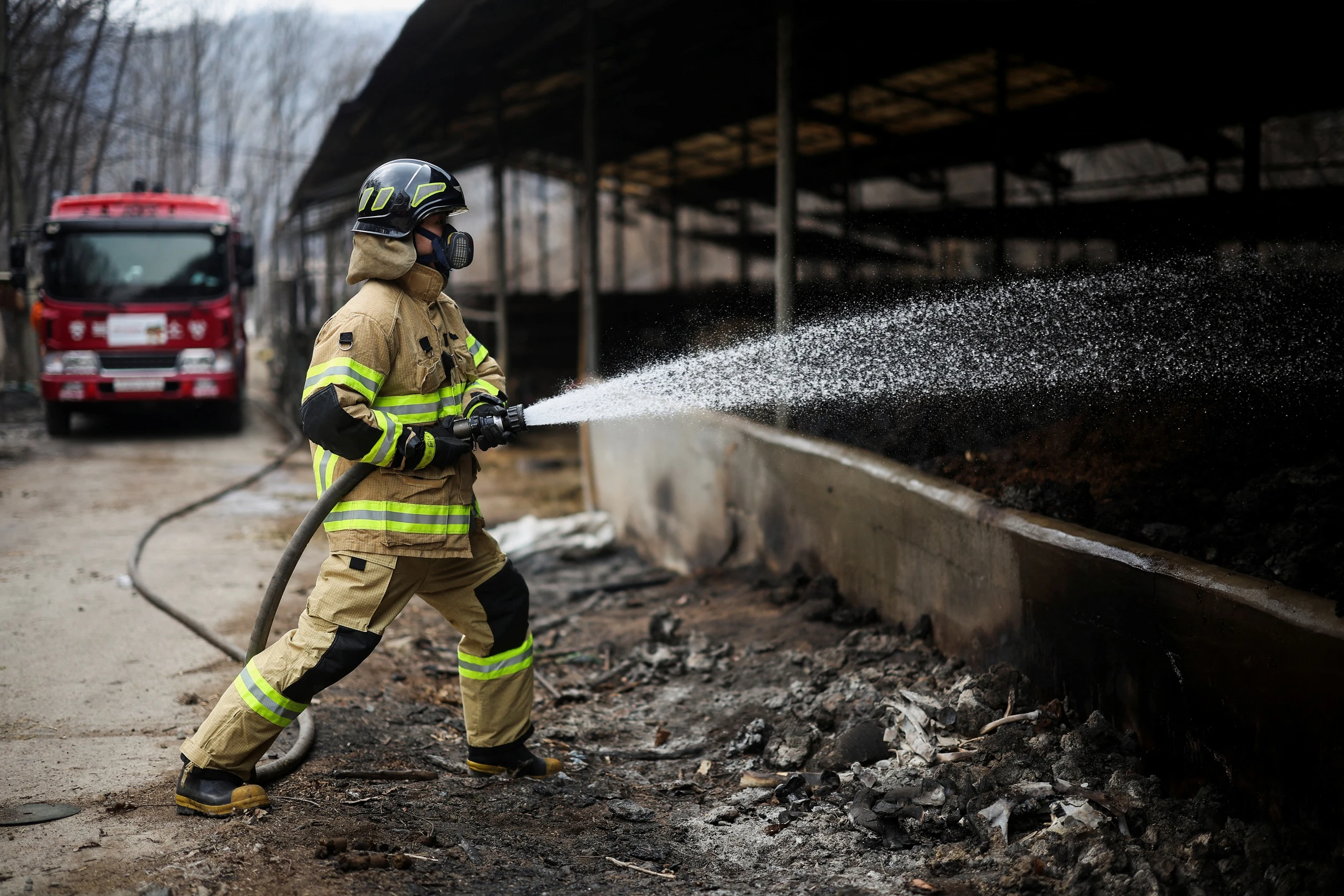 Lính cứu hỏa chữa cháy tại một trang trại ở khu vực Useong hôm 27.3. ẢNH: REUTERS