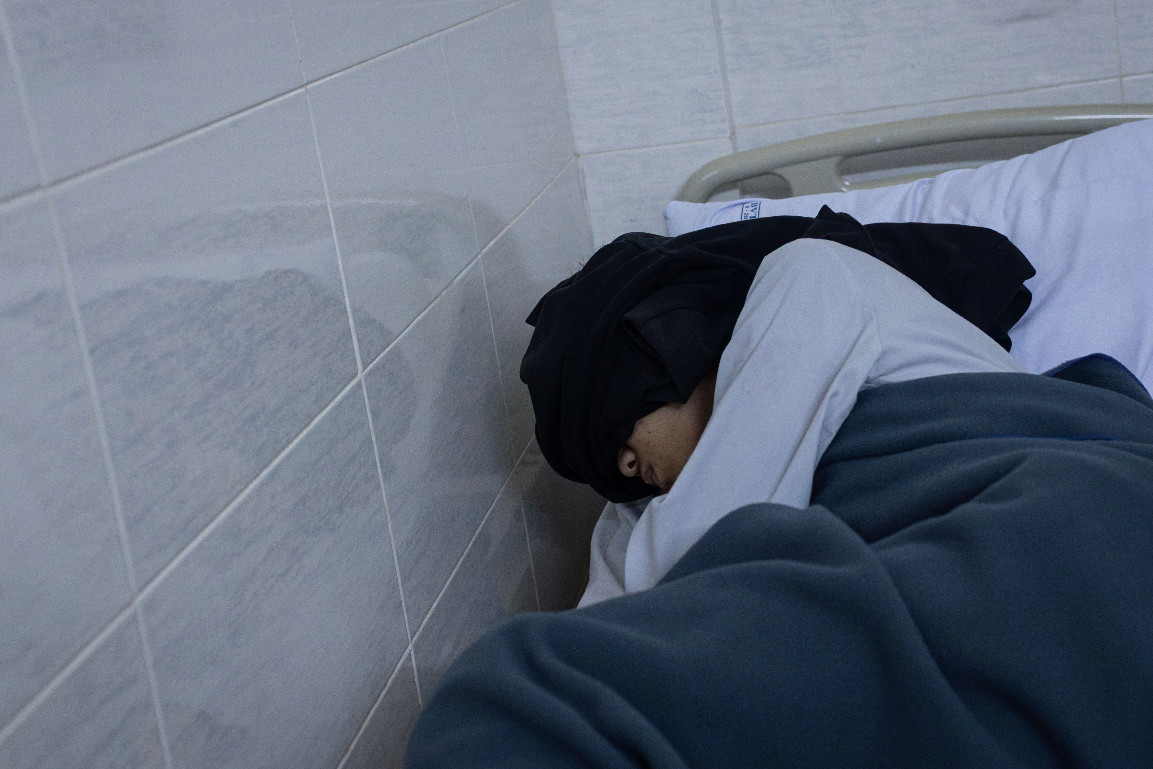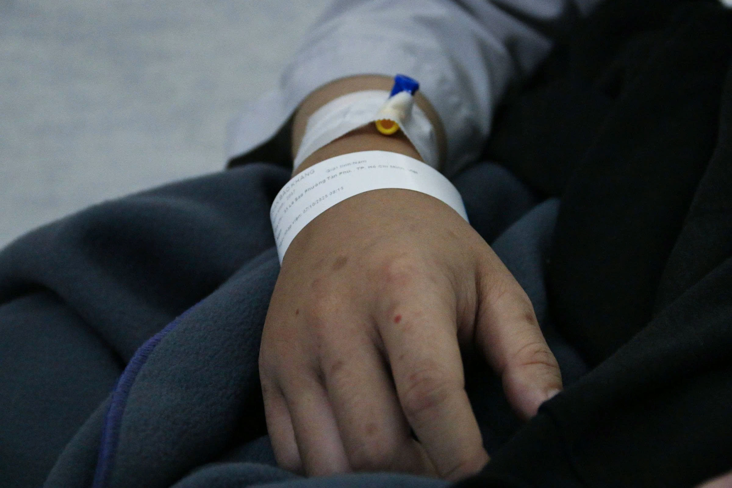 Bảo Khang tranh thủ nghỉ ngơi trên giường bệnh. Ở tuổi 18, chàng trai phải nhập viện cấp cứu khi được chẩn đoán suy thận giai đoạn 3. Căn bệnh đã diễn tiến âm thầm suốt nhiều năm mà không được phát hiện. "Trước khi nhập viện, em thấy người mệt, nước tiểu sẫm màu và có bọt", Khang kể.