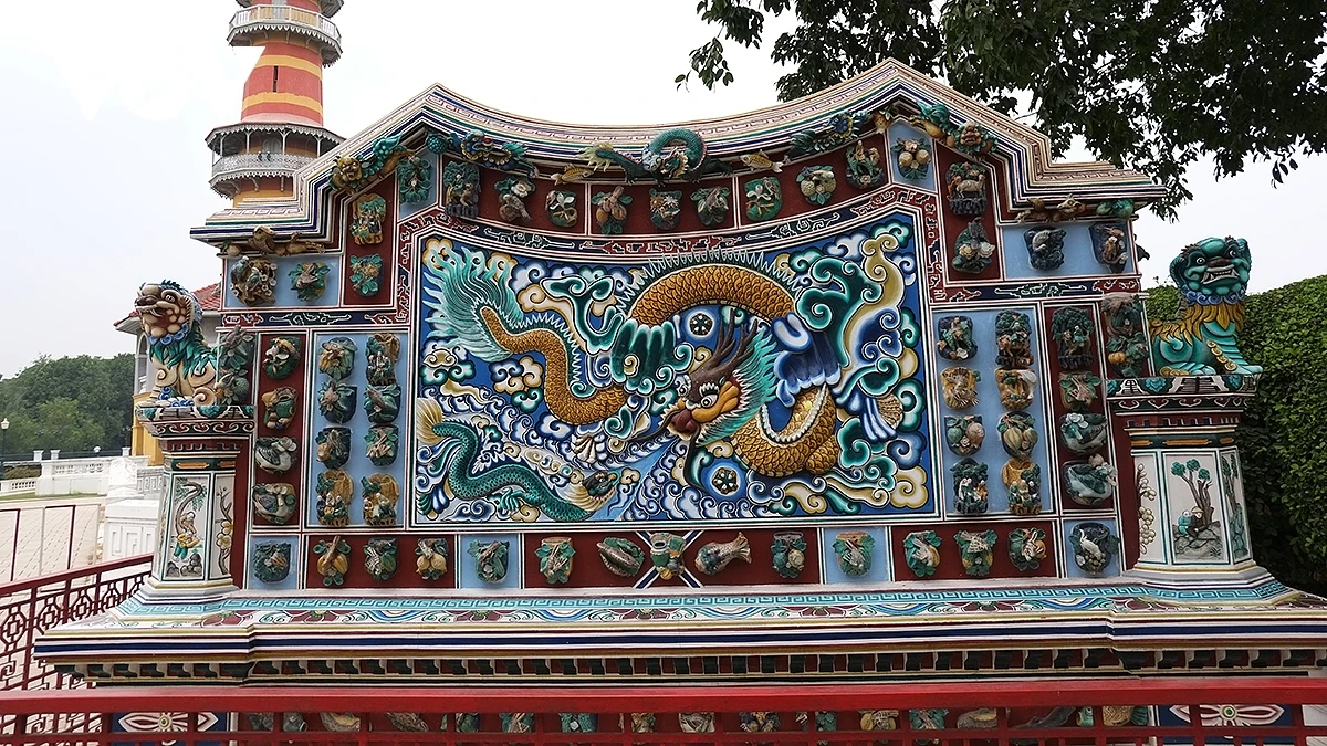 Bức bình phong mang phong cách Trung Hoa trước điện Wehat Chamrun.