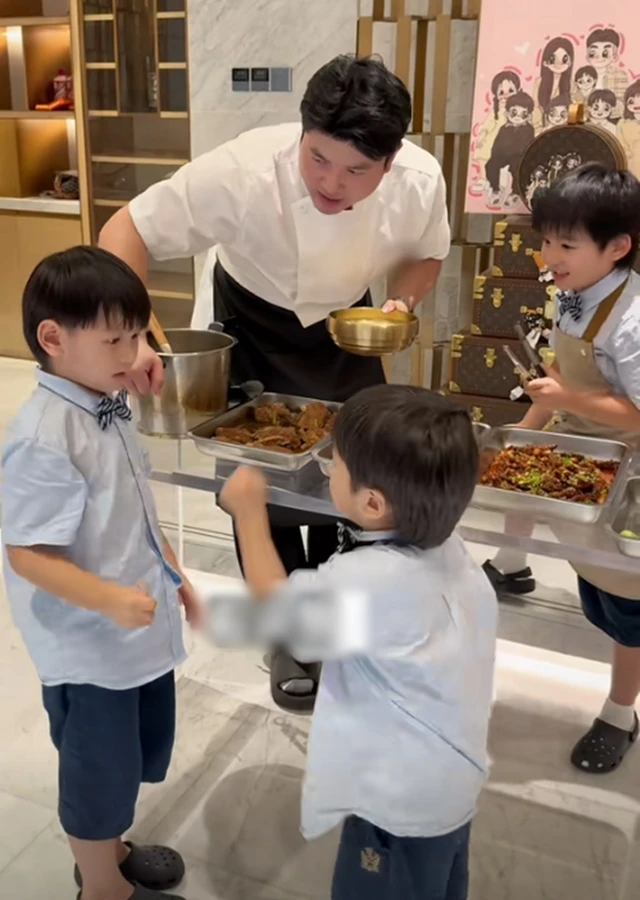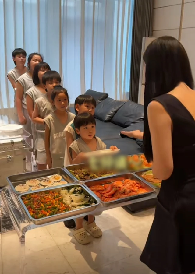 Không chỉ chi mạnh, Văn Văn và Đông Ca còn cực kỳ tâm lý trong việc nuôi dạy con. Ngôi nhà của họ như một “vương quốc trẻ em”, với biệt thự 6 tầng, có thang máy và phòng riêng cho từng bé. Bữa ăn được Đông Ca đích thân chuẩn bị, đảm bảo cân bằng dinh dưỡng, như ở căng tin 5 sao. Cảnh rửa chân buổi tối thì như “dây chuyền sản xuất”: 7 chiếc ghế xếp hàng, Đông Ca xách thùng nước, đổ đầy chậu cho từng bé, thuần thục như một “siêu bố bỉm”.