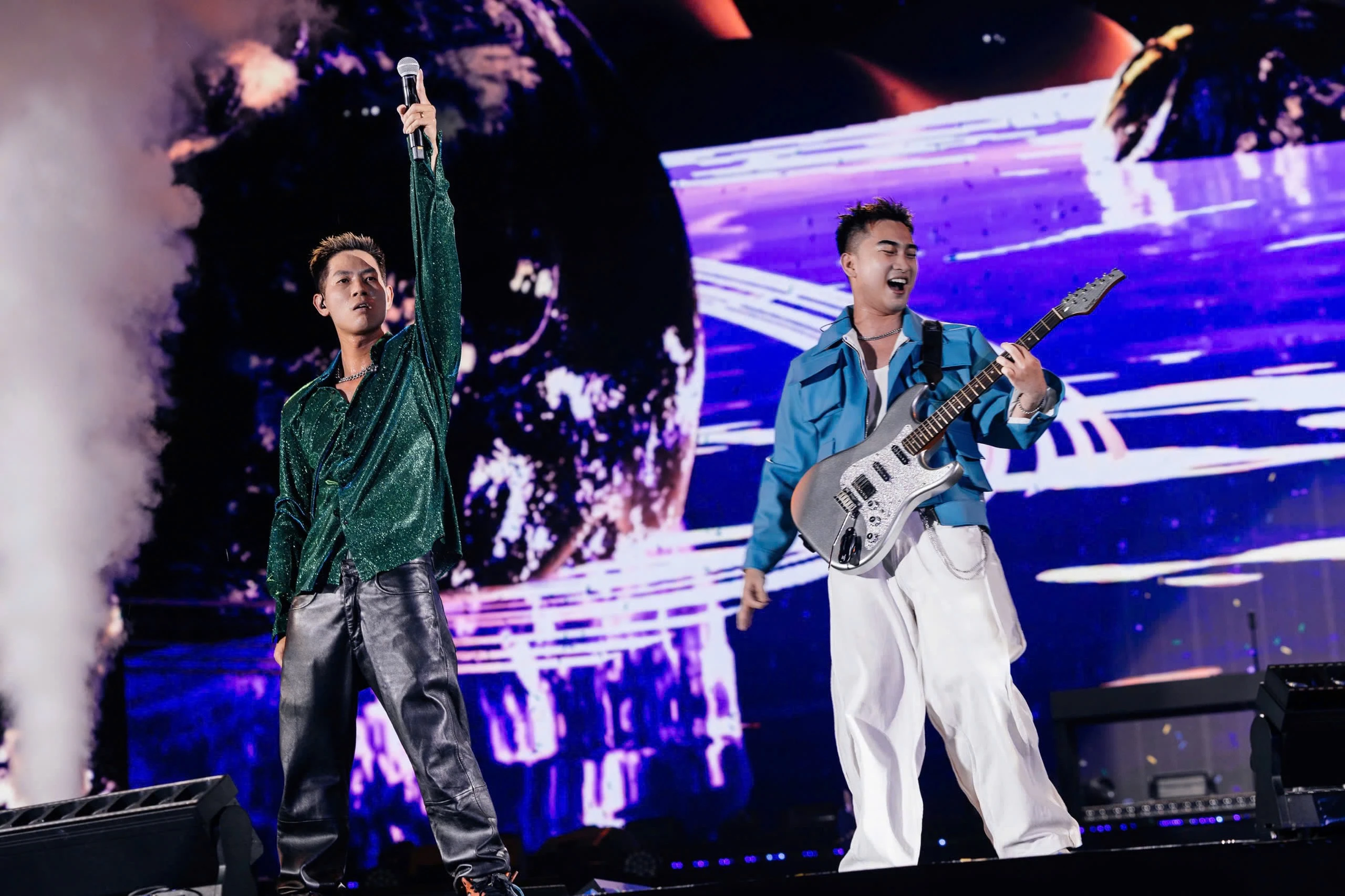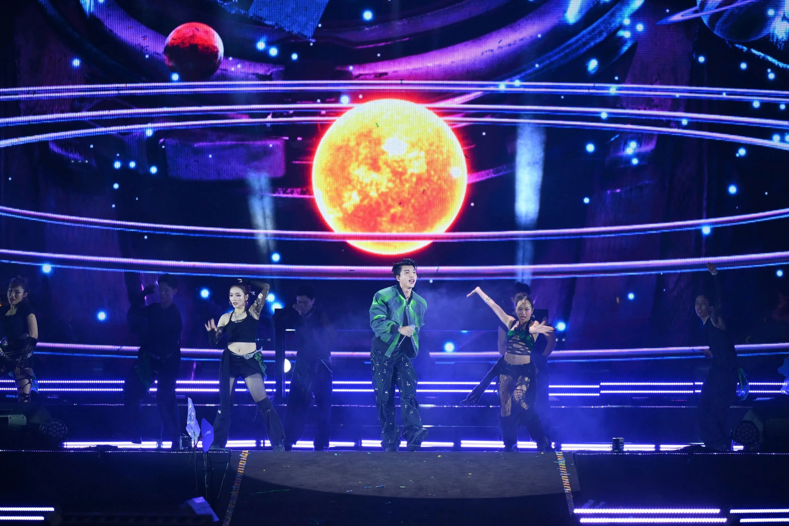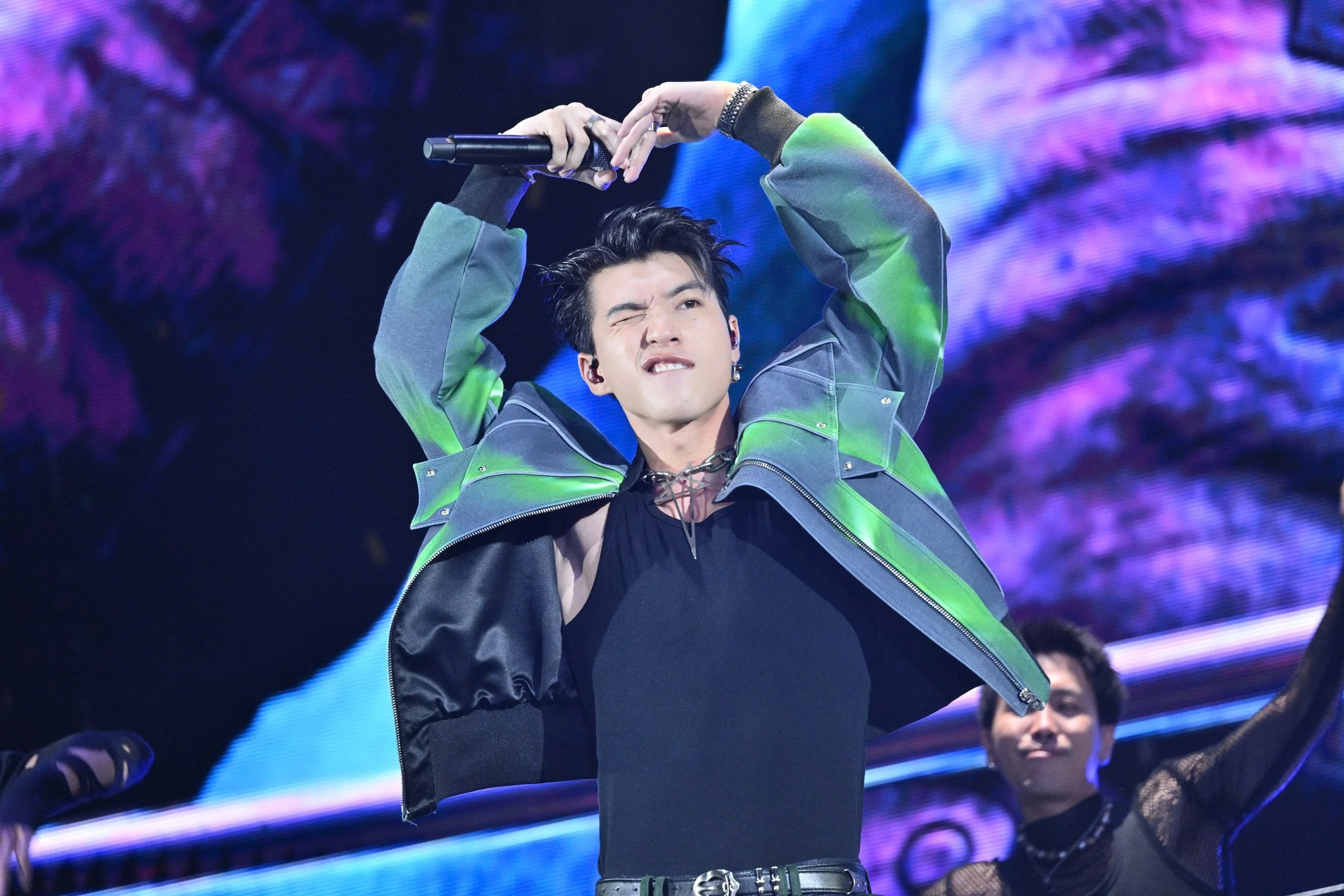 Anh đã trình diễn Vệ tinh, Nước mắt cá sấu, NOLOVENOLIFE, Hẹn gặp em dưới ánh trăng và Walk, khép lại đêm nhạc bằng những giai điệu trẻ trung và năng động. ẢNH: BTC