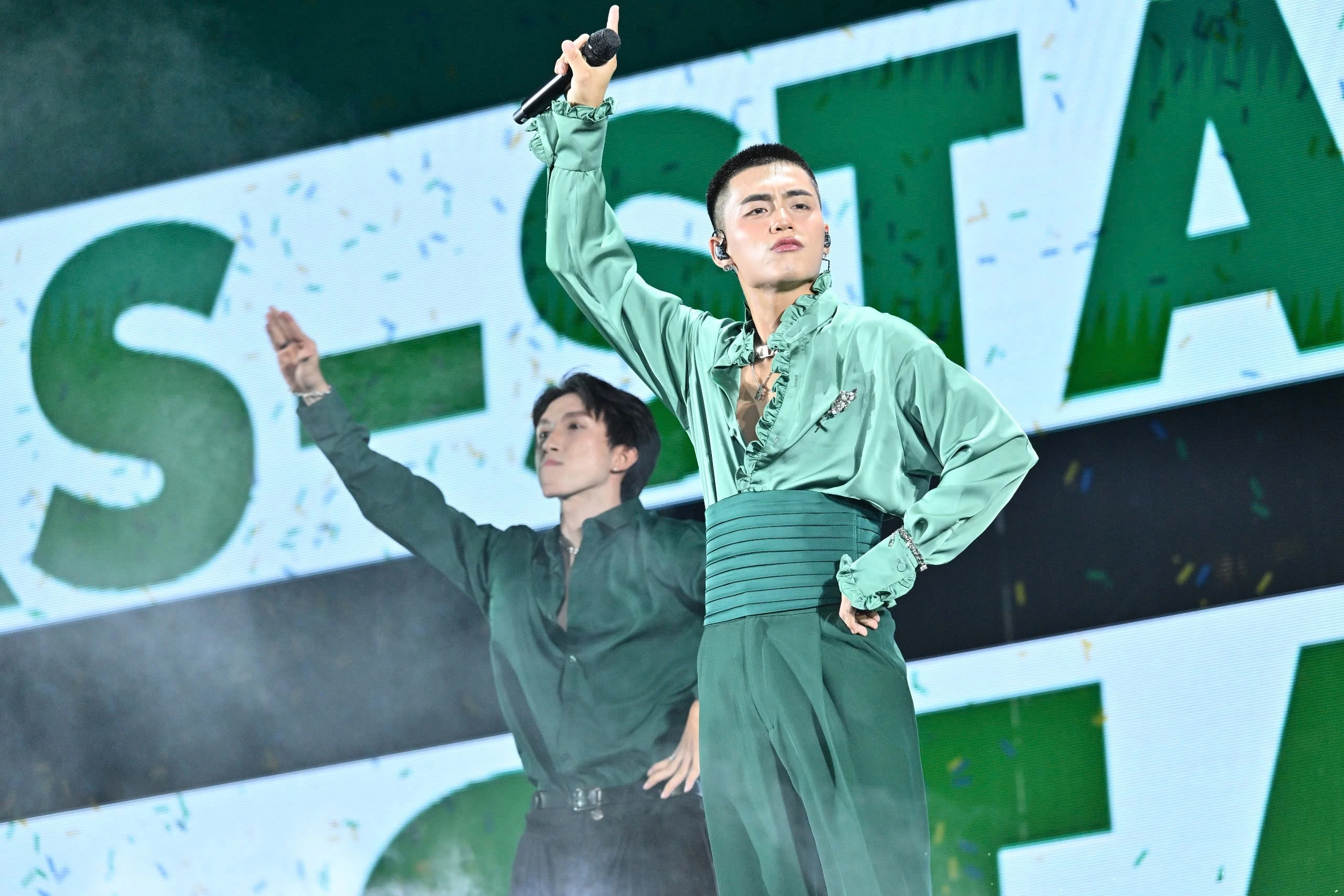 MONO tiếp tục khẳng định vị thế của mình trong làng nhạc Việt với những ca khúc có giai điệu bắt tai và vũ đạo cuốn hút. Anh đã khuấy động đám đông với Em xinh, Chăm hoa và bản hit đình đám Waiting for You, khiến hàng ngàn khán giả hòa mình vào từng nhịp điệu. ẢNH: BTC