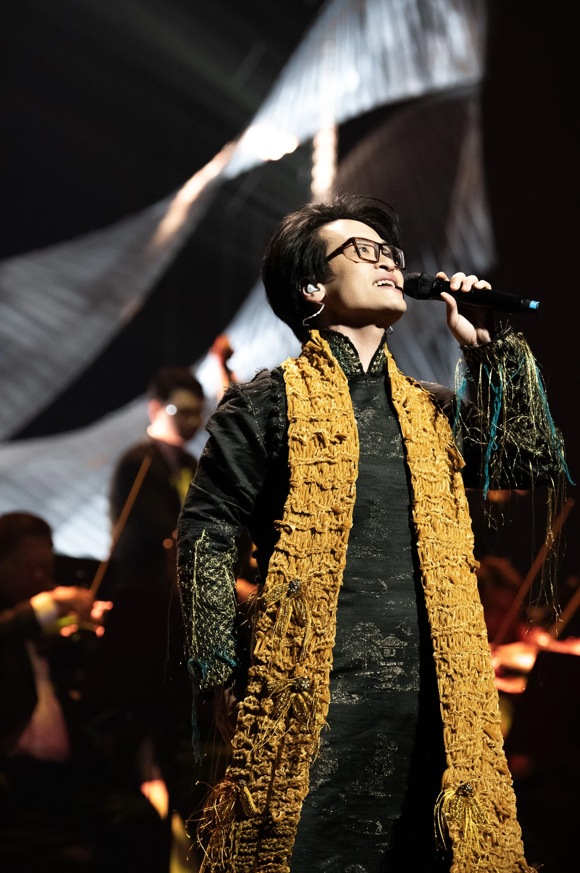 Hà Anh Tuấn đeo khăn quàng làm bằng măng khô Việt Nam