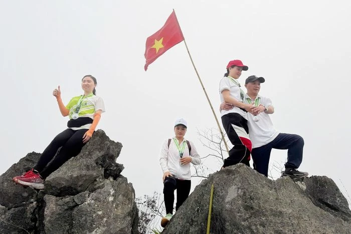Các VĐV chụp ảnh trên đỉnh núi Hài.