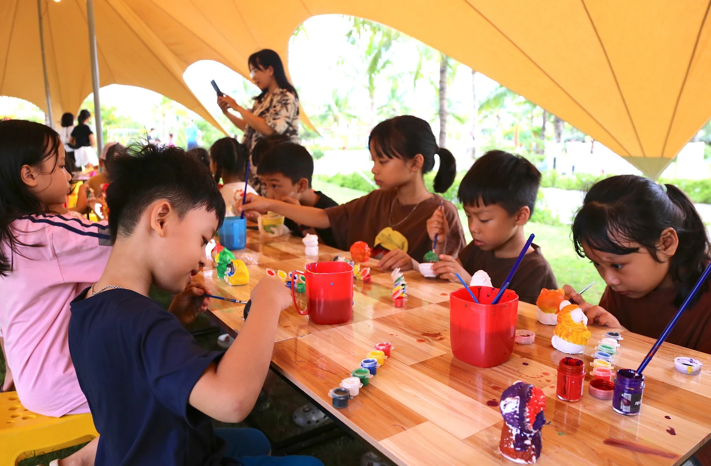 Các trò chơi dân gian, trải nghiệm, hướng dẫn kỹ năng đặc biệt thu hút các thực khách “nhí”.