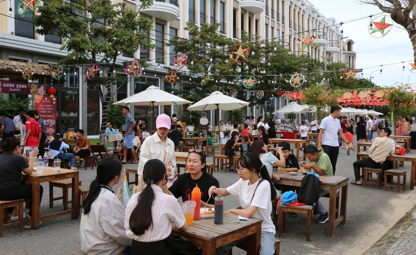Rất đông du khách và người dân đổ về khu đô thị nghỉ dưỡng gần bãi biển An Bàng, TP. Đà Nẵng tham gia chợ phiên di sản , hào hứng trải nghiệm không gian văn hóa, ẩm thực, nghệ thuật mang đậm dấu ấn phố Hội.