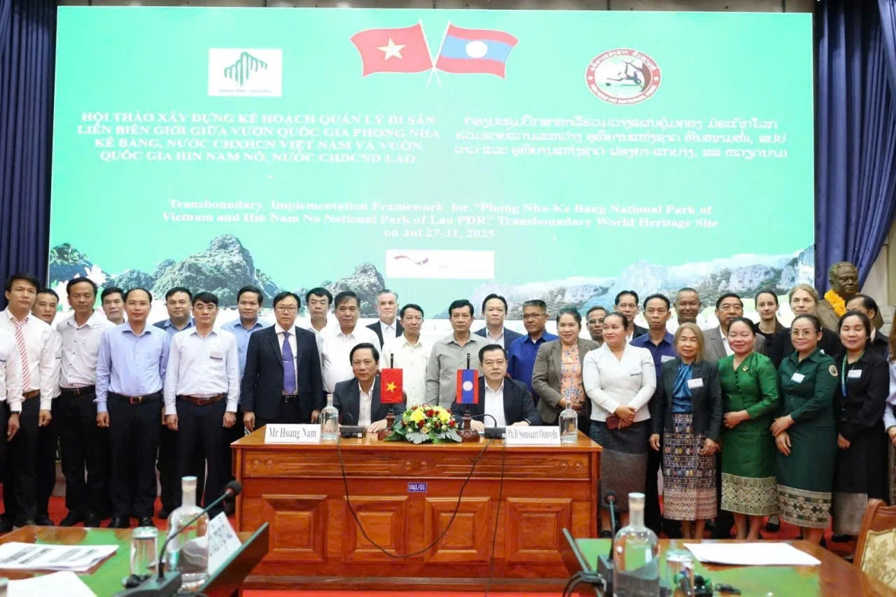 | Đoàn Việt Nam và Lào trao đổi về Hồ sơ đề cử Vườn quốc gia Hin Nam Nô và công tác quản lý Di sản thế giới liên biên giới "Vườn quốc gia Phong Nha - Kẻ Bàng và Vườn quốc gia Hin Nam Nô" (Paris, ngày 12/7/2025). Ảnh: Cục Di sản văn hóa. |