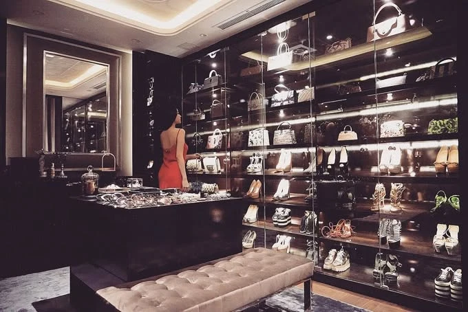 Người đẹp sở hữu hàng trăm đôi giày, túi xách và quần áo hàng hiệu.