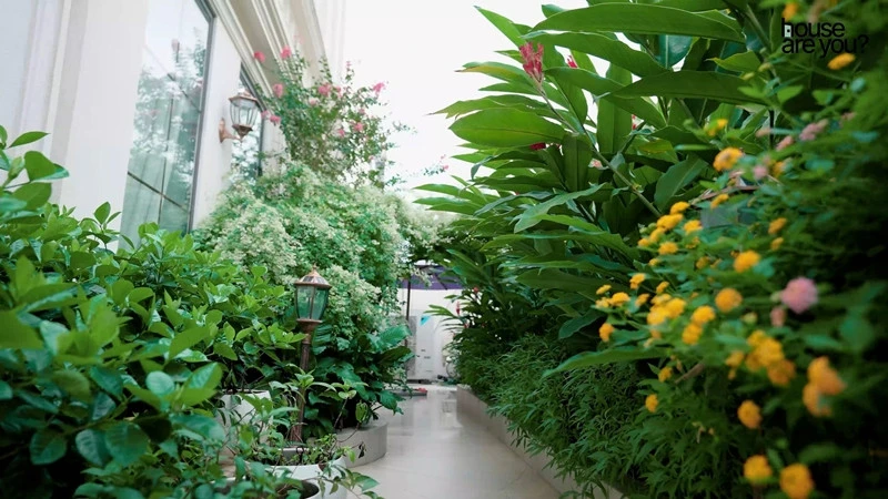 Sân vườn xanh mướt nơi Huyền Baby trồng các loại hoa, cây cảnh.