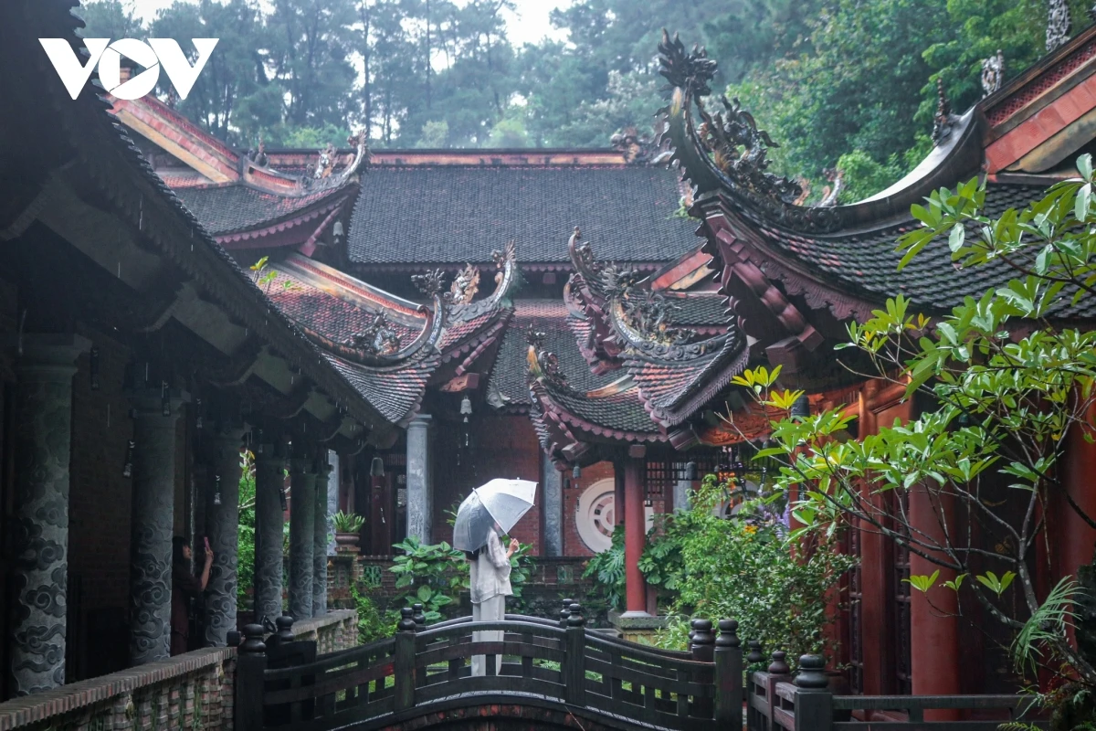 Vẻ đẹp vừa cổ kính trầm mặc, vừa nên thơ của chùa Địa Tạng Phi Lai trong một cơn mưa.