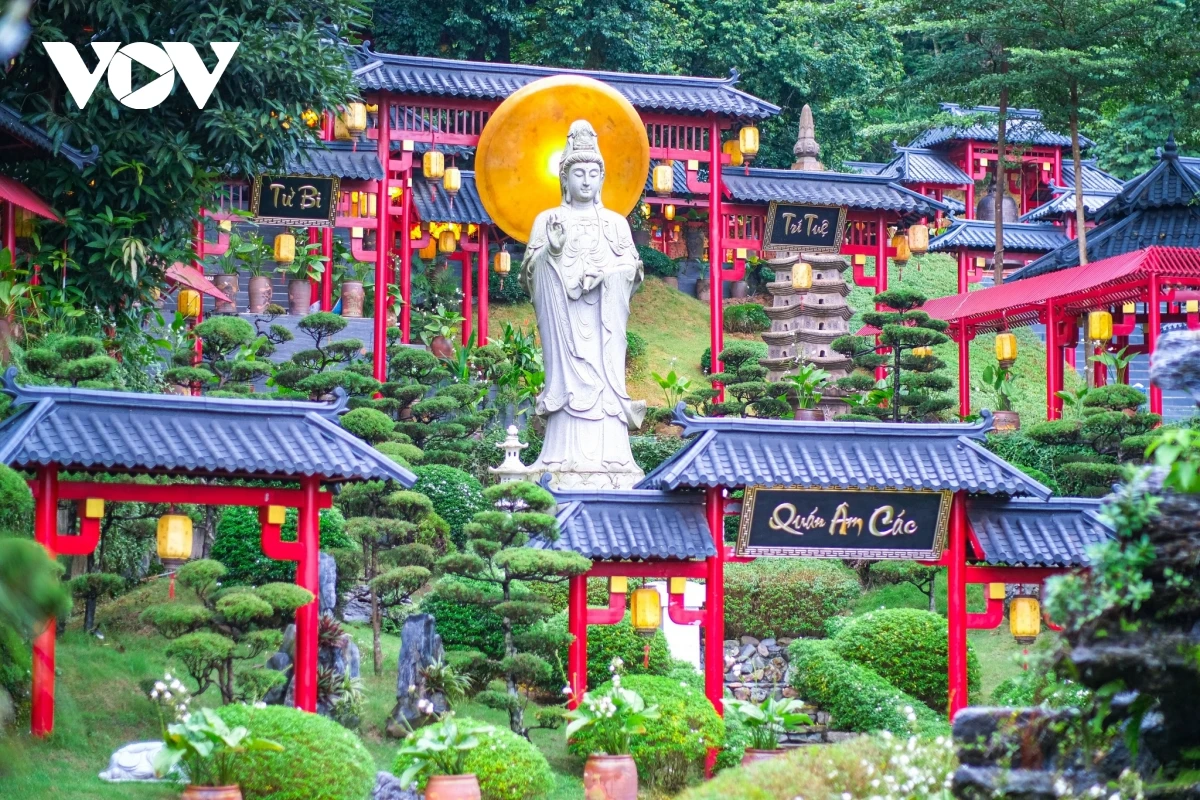 Với lối kiến trúc kết hợp độc đáo, cùng không khí trong lành, mát mẻ, mùi hương cỏ cây, tiếng chim hót… không gian yên bình tại ngôi chùa giúp khách tham quan trút bỏ mệt nhọc, lo âu hằng ngày.