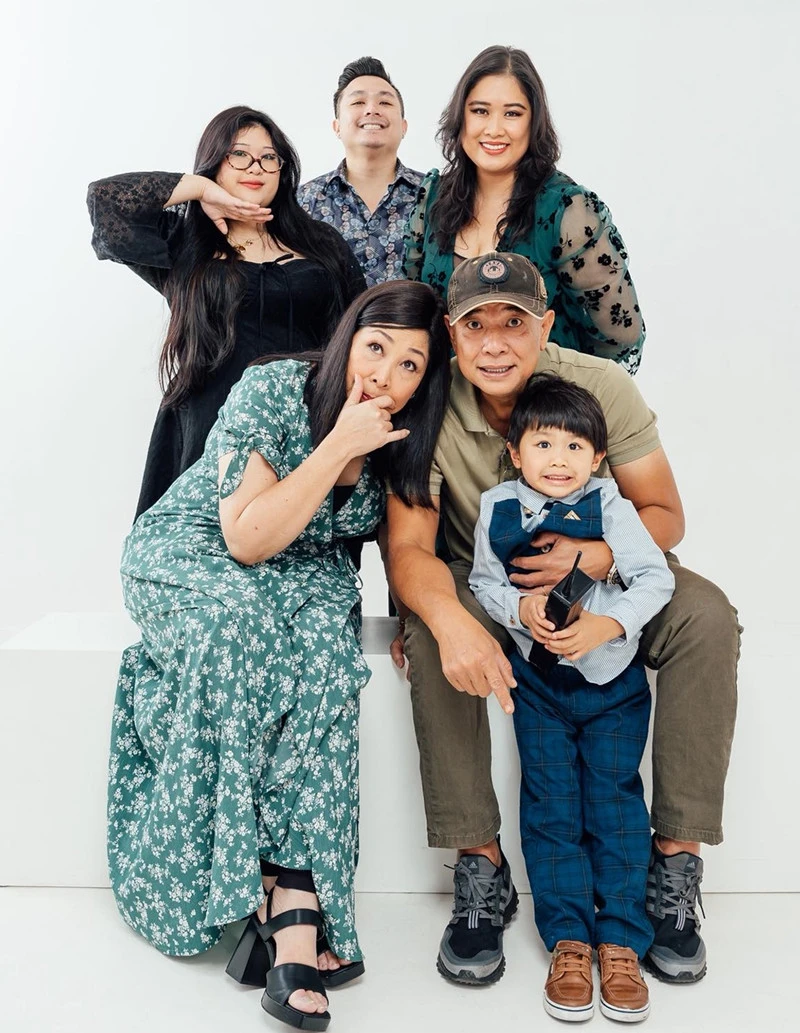 NSND Hồng Vân sum họp cùng gia đình 3 thế hệ, chụp ảnh kỷ niệm trong chuyến thăm Mỹ.