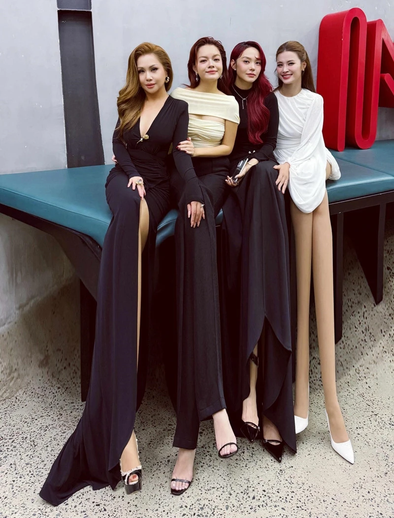 Ca sĩ Minh Tuyết hài hước chia sẻ: “Ai ghen tị sẽ nói chân chúng tôi là A.I” kèm hình ảnh đôi chân của cô và các chị đẹp Phạm Quỳnh Anh, Minh Hằng, Đông Nhi bị photoshop kéo dài.