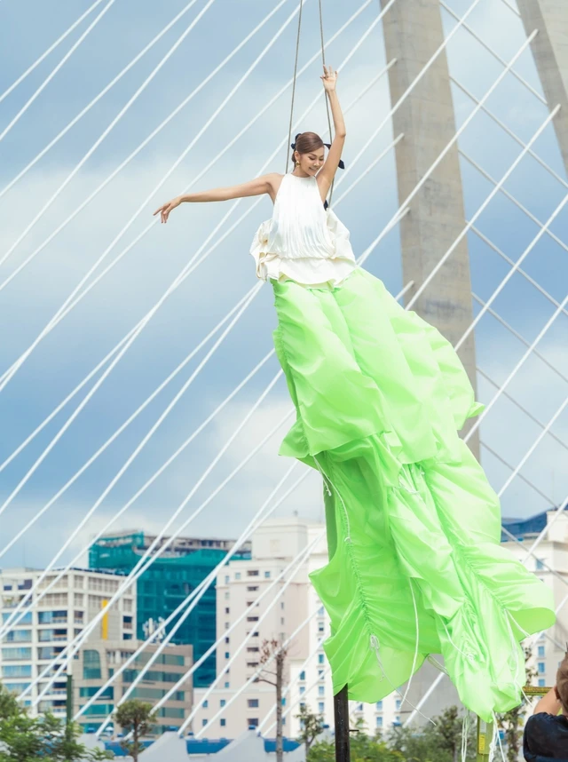 Tập mở màn Vietnam's Next Top Model 2025 mang đến thử thách chụp ảnh trên không, nơi 15 thí sinh tạo dáng với những chiếc váy khổng lồ ở độ cao hơn 5m tại Công viên Sáng tạo (TPHCM).