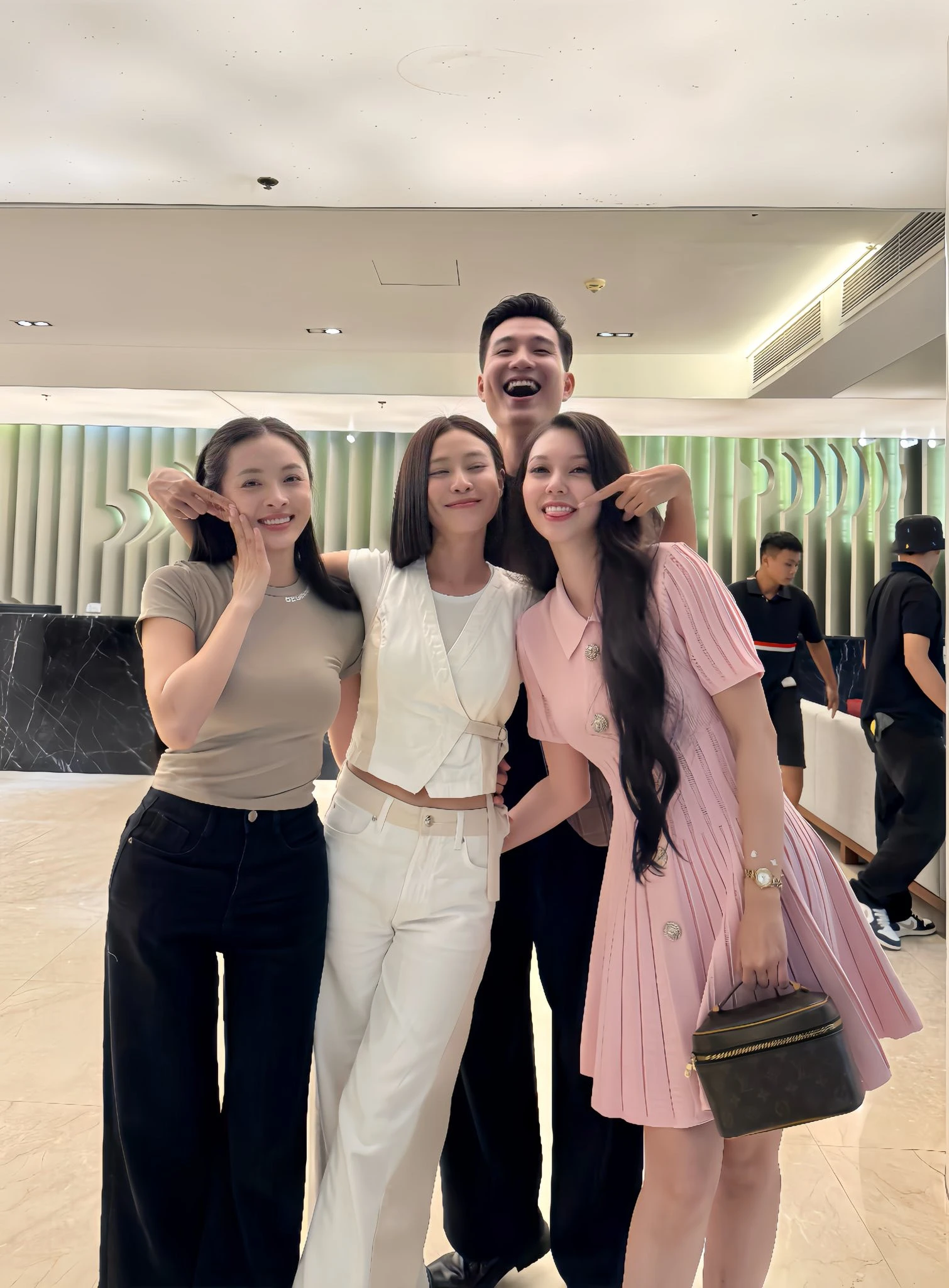 Căng thẳng trên phim nhưng ở hậu trường Hà Bùi và dàn diễn viên "Cách em 1 milimet" thân thiết vui vẻ và tương tác nhiệt tình.