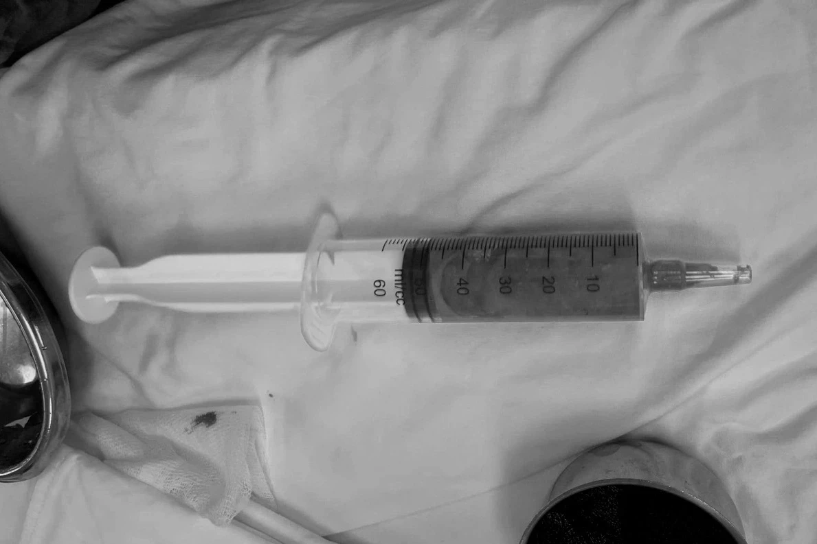 Dịch mủ được hút ra từ mô vú trong ca phẫu thuật (Ảnh: BV).