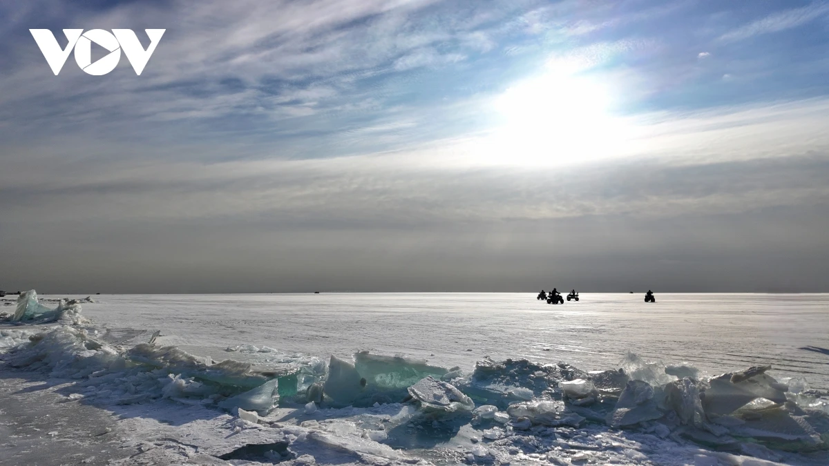 Baikal khoác lên mình lớp băng dày như pha lê, nứt vỡ thành những đường vân tự nhiên