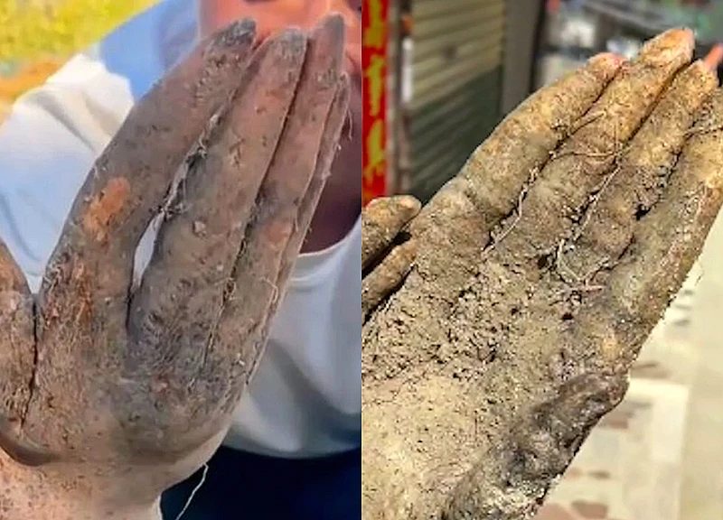 Nông dân Trung Quốc đào được củ khoai dài 1m, giống bàn tay người