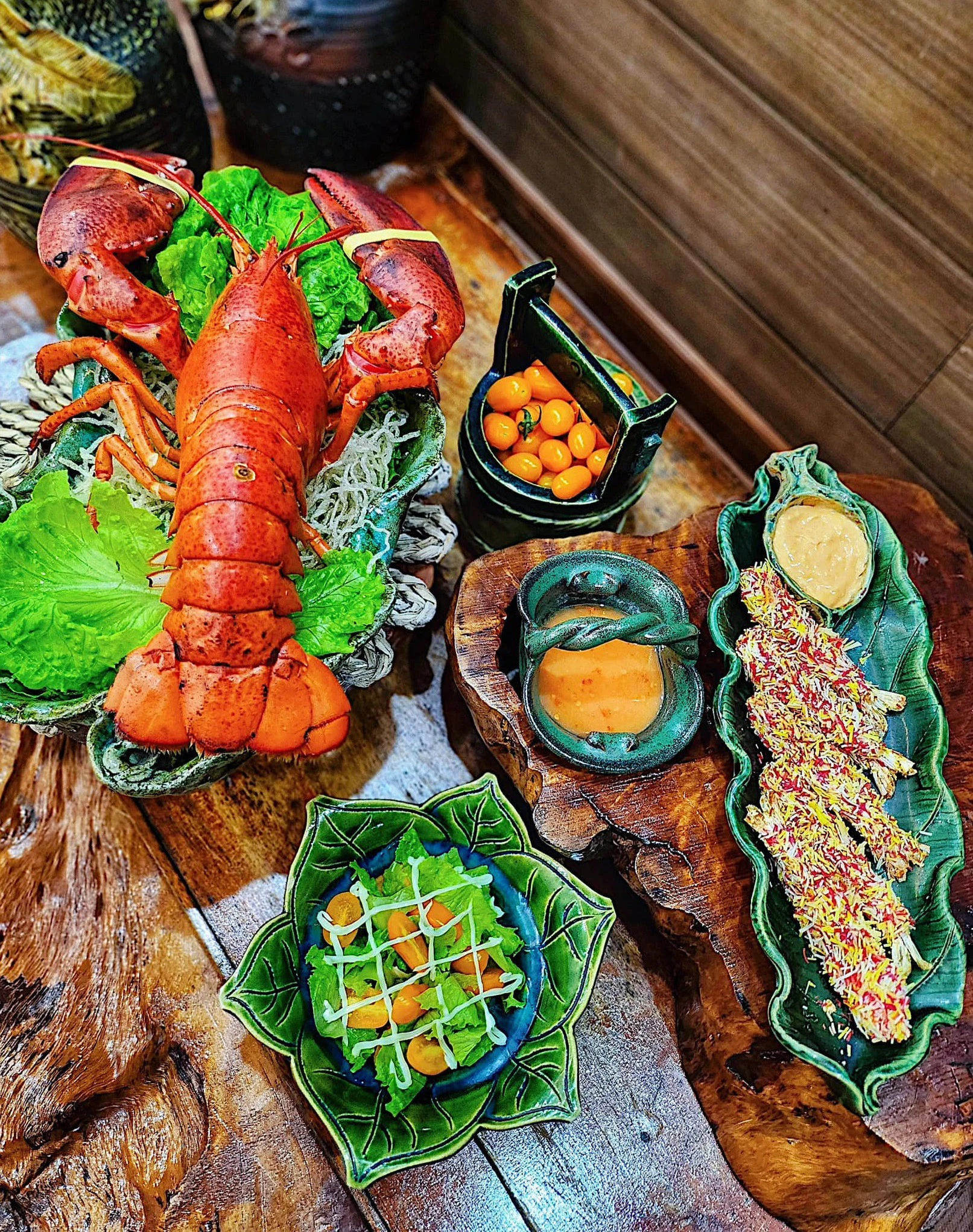 Tôm nướng – Cánh gà chiên mắm – Salad – Canh rau củ