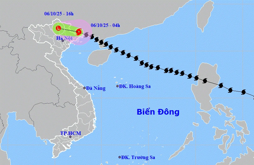 Các khu vực đất liền của Việt Nam không còn nguy cơ ảnh hưởng của gió cấp 8, mưa lớn ở vùng núi và trung du Bắc Bộ tập trung vào chiều tối và đêm nay (6/10). Riêng thủ đô Hà Nội sáng mưa nhỏ, trưa và chiều mưa tăng dần, tổng lượng mưa phổ biến 50-100mm.
