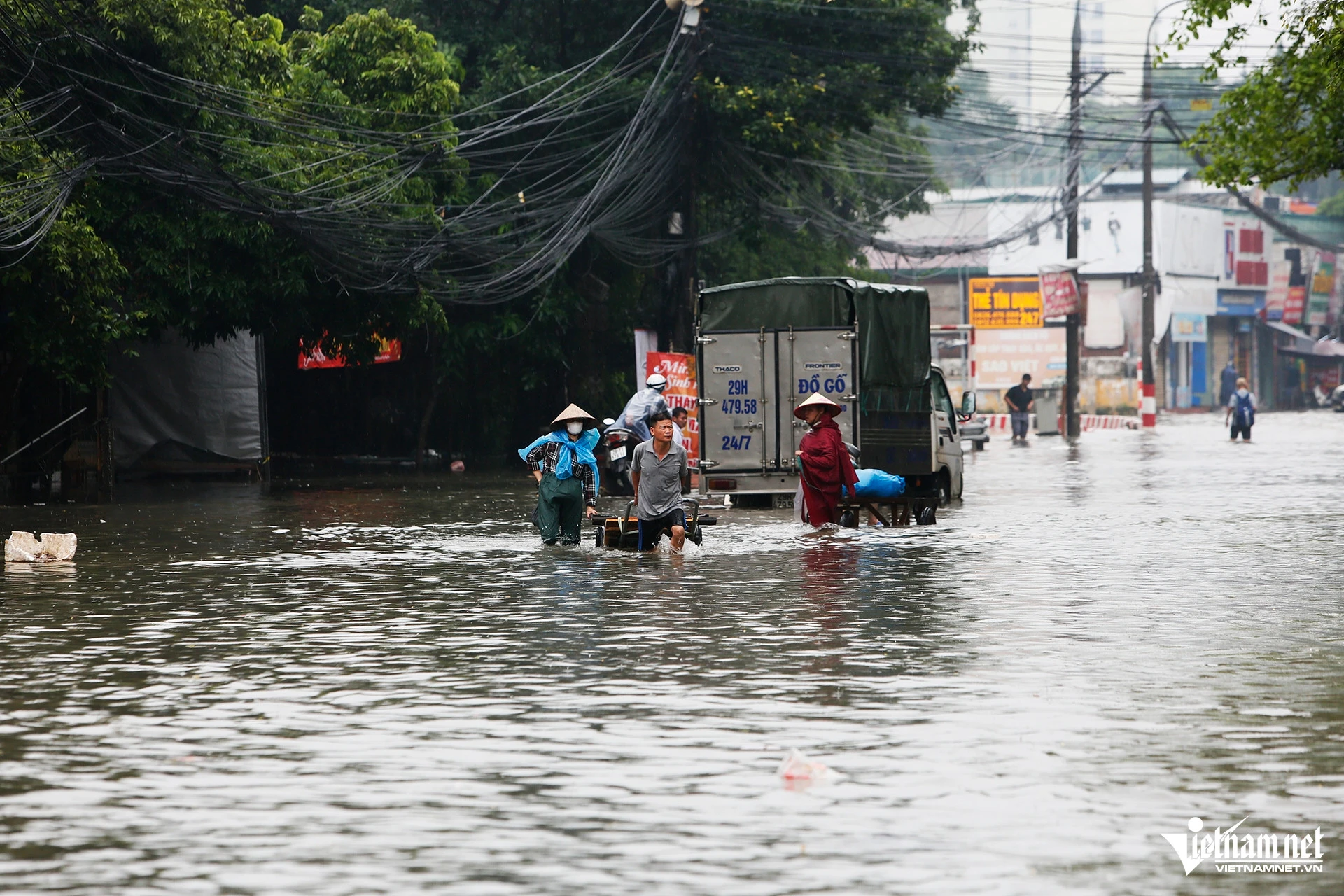 Các điểm ngập sâu khác trên đường Phùng Hưng (phường Hà Đông) và Cầu Bươu (phường Thanh Liệt) nước dâng cao đến gần 1m. Tại đây, chỉ có xe tải, ô tô gầm cao mới có thể lưu thông qua.