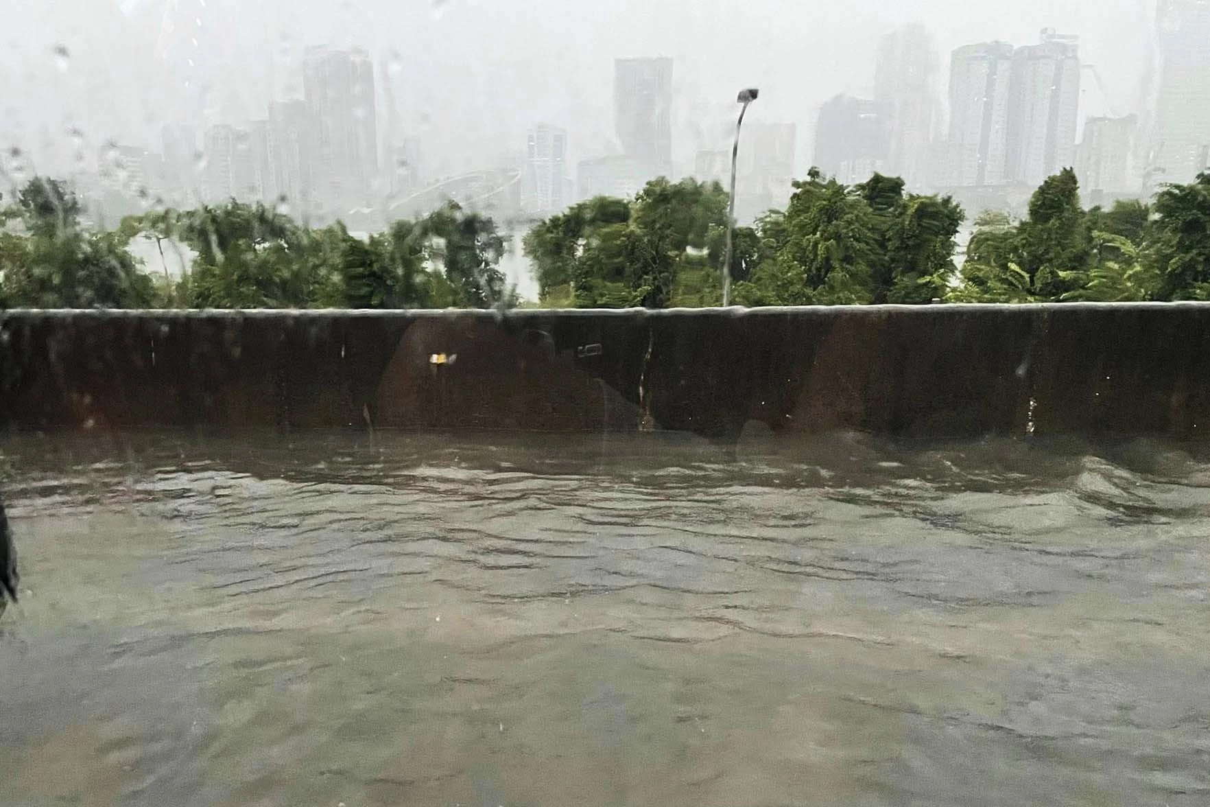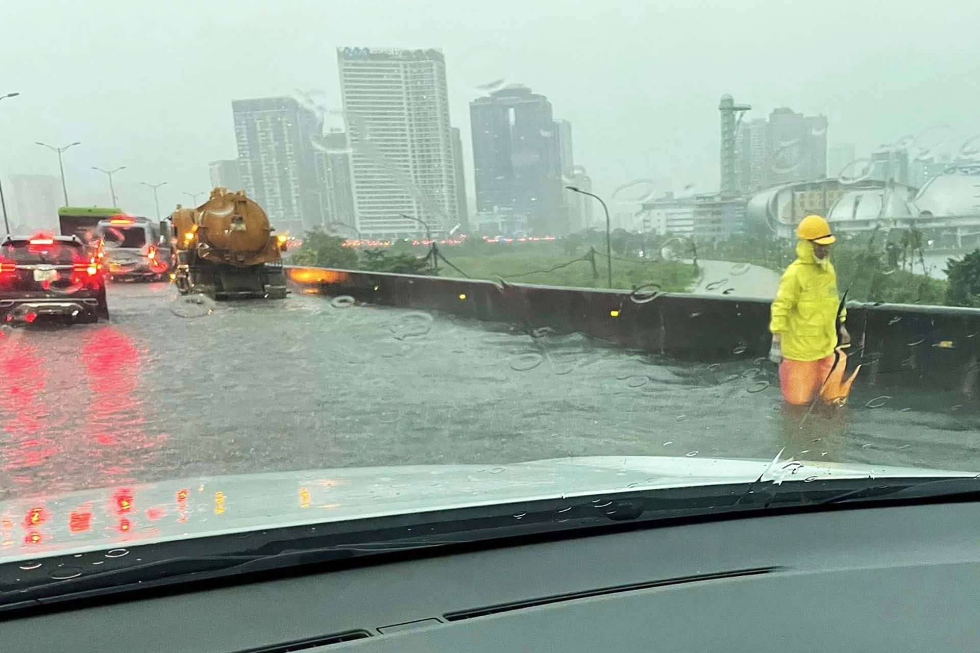 Nước ngập sâu ngay cả ở vành đai 3 trên cao. Ảnh: W.S