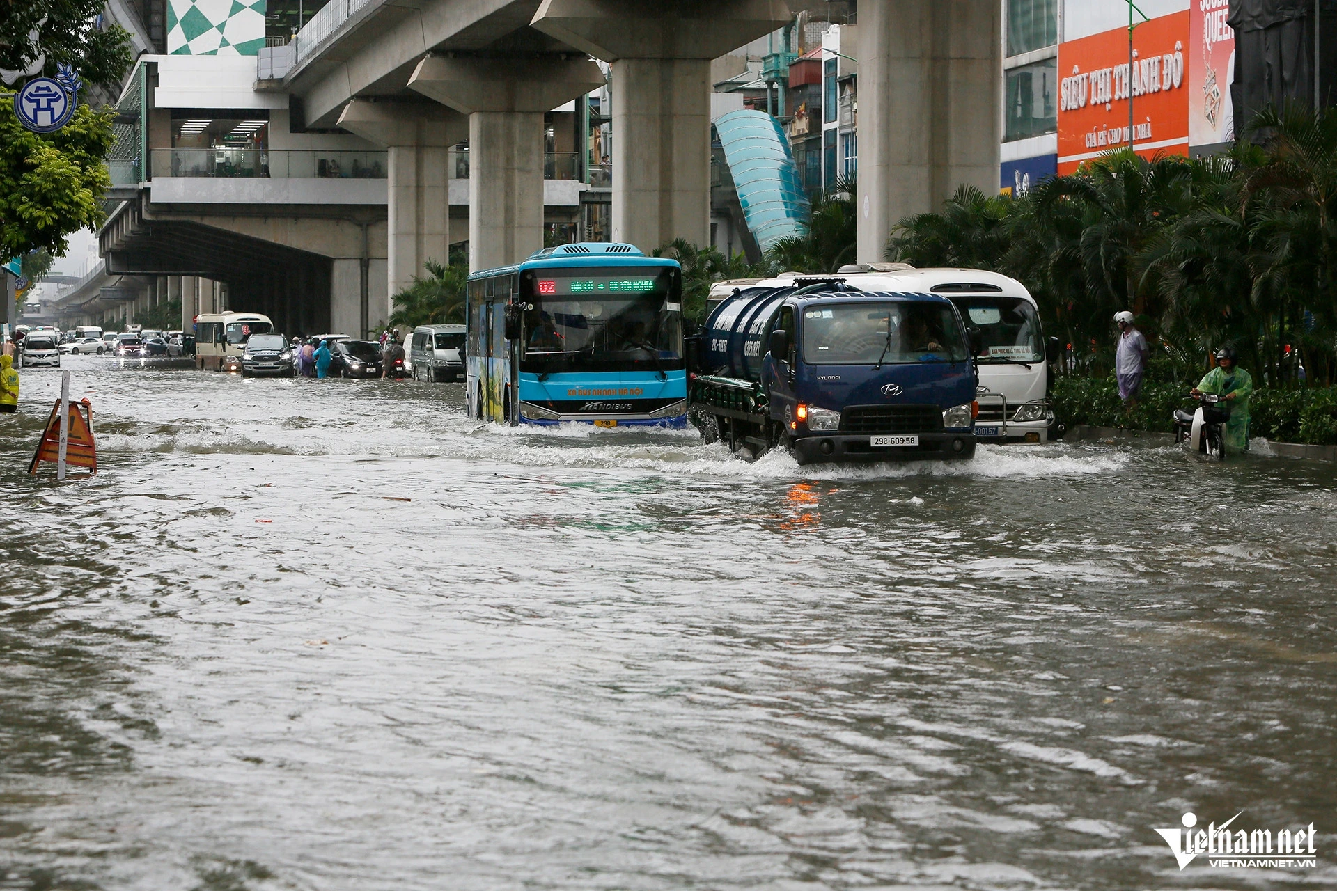 Đường Quang Trung (hướng về Bến xe Yên Nghĩa) bị ngập sâu. Ảnh: Đình Hiếu