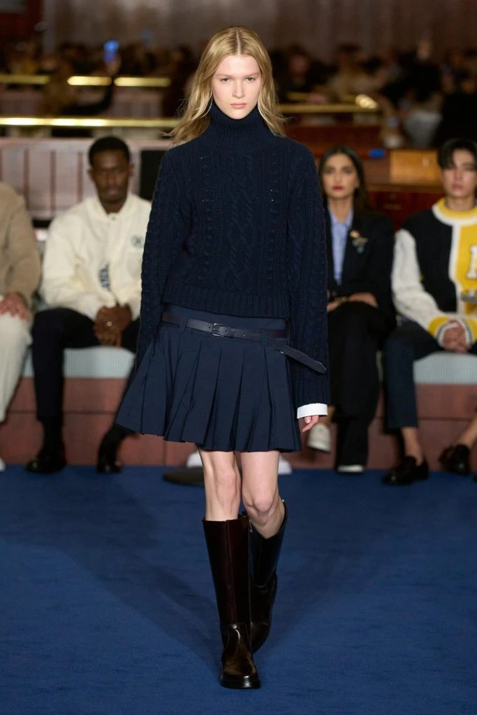 Trên sàn diễn mùa thu đông 2025, thương hiệu Tommy Hilfiger đã trình làng những bộ trang phục theo phong cách học đường với tông màu xanh navy làm chủ đạo