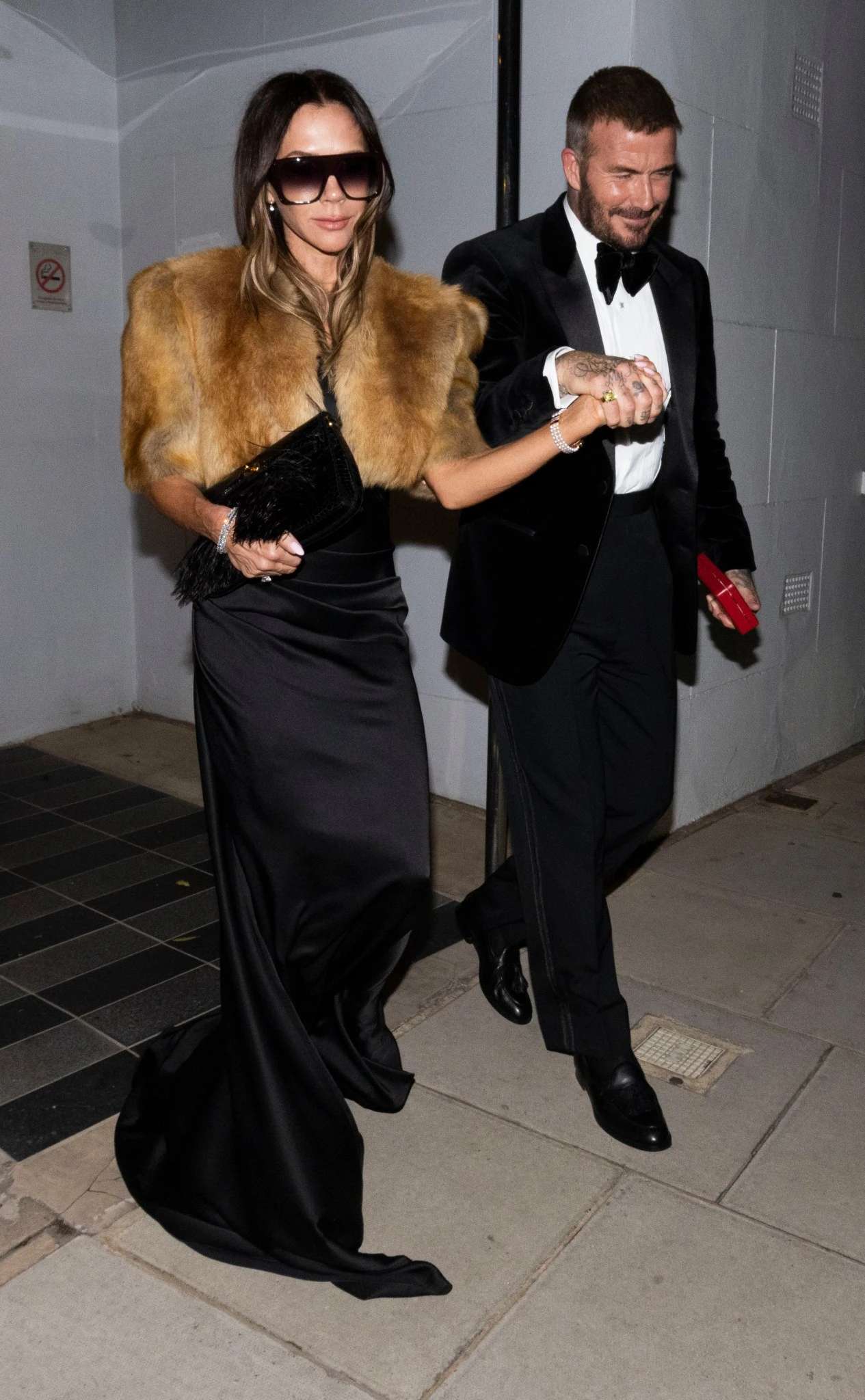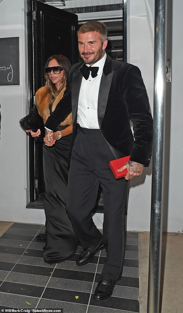 Đến tận 1 giờ sáng, vợ chồng Beckham mới rời khỏi nhà hàng. Sir David trông hơi mệt nhưng vẫn phong độ ngời ngời trong bộ tuxedo nhung cổ điển, tay nắm chặt Victoria - tay còn lại vẫn giữ khư khư huân chương phong tước, kỷ vật thiêng liêng của ngày trọng đại.