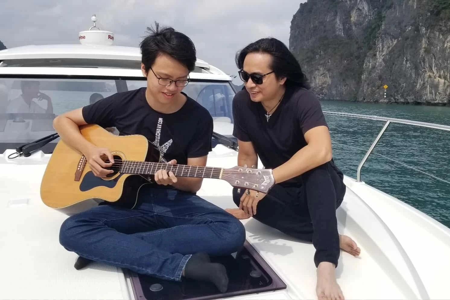 Con trai guitarist Trần Tuấn Hùng gây ấn tượng khi chơi nhạc giữa vịnh Hạ Long