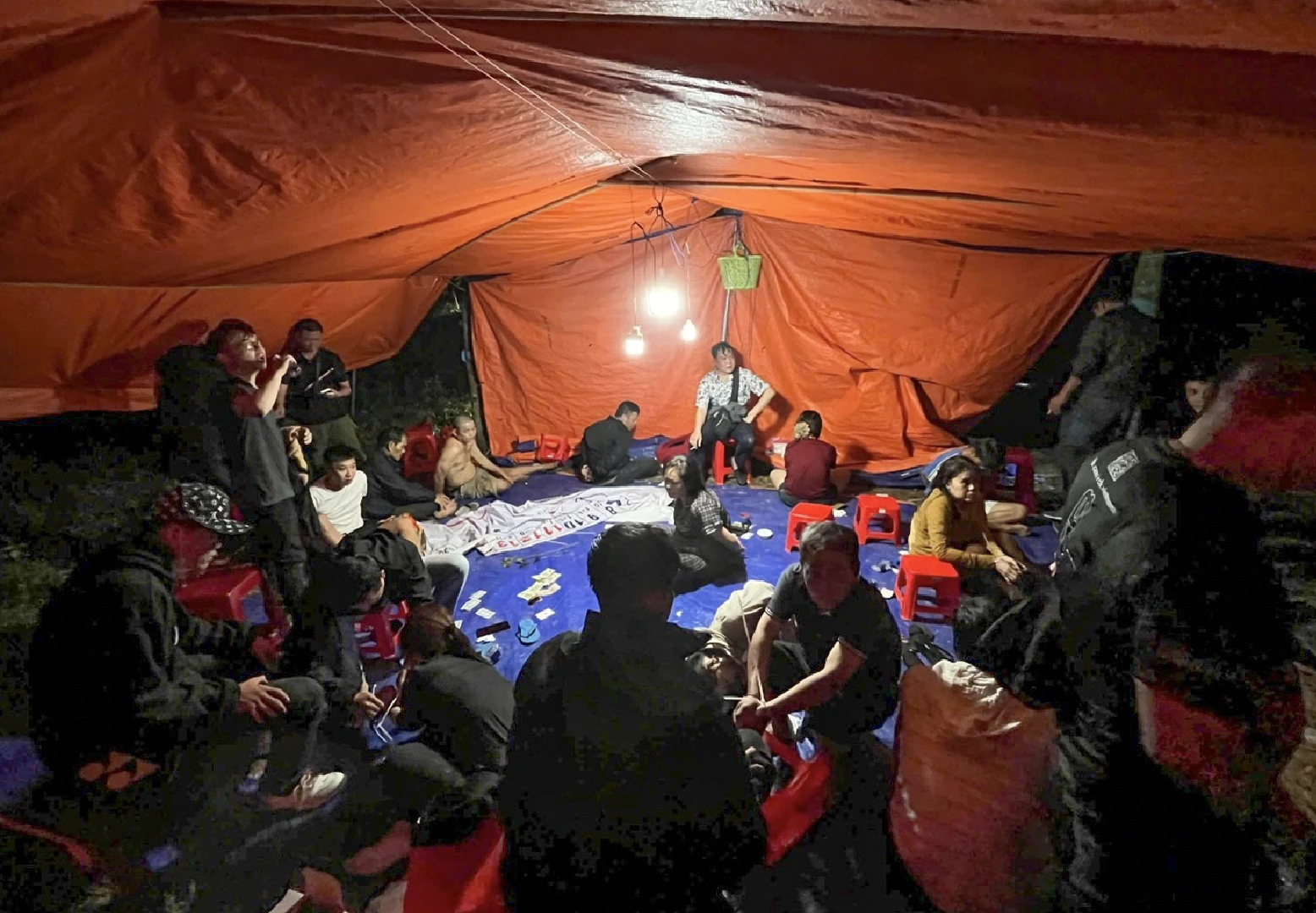 Theo thông tin điều tra ban đầu của công an, rạng sáng cùng ngày, 15 nam nữ đến rừng cao su vắng người ở thôn 3, xã Tánh Linh, sát phạt nhau bằng hình thức xóc tài xỉu. Khi nhóm này đang sát phạt, công an ập đến bắt giữ cùng tang vật, gồm: dụng cụ đánh bạc, gần 270 triệu đồng.