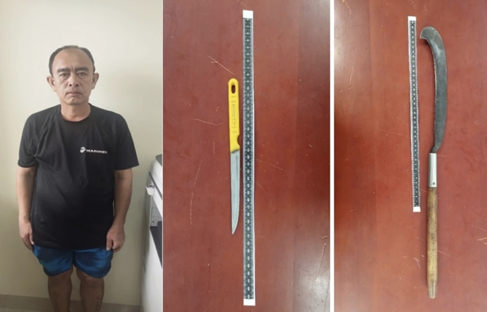 Ngô Văn Thuận cùng hung khí được sử dụng để đe dọa người dân (Ảnh: Công an Lâm Đồng).