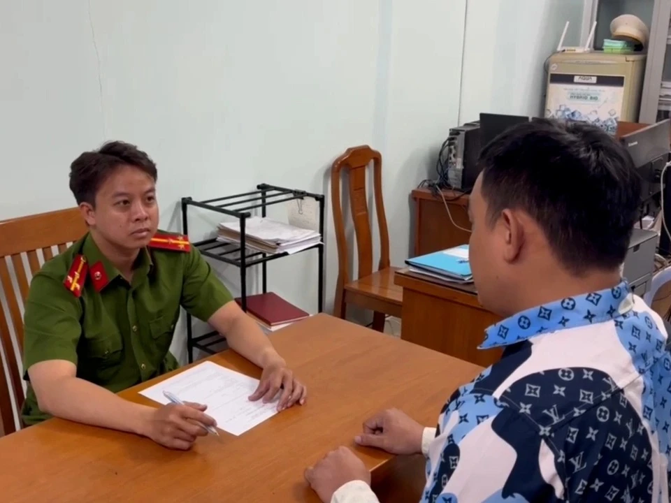 Công an lấy lời khai ông L.Đ.C. (Ảnh: Công an cung cấp).