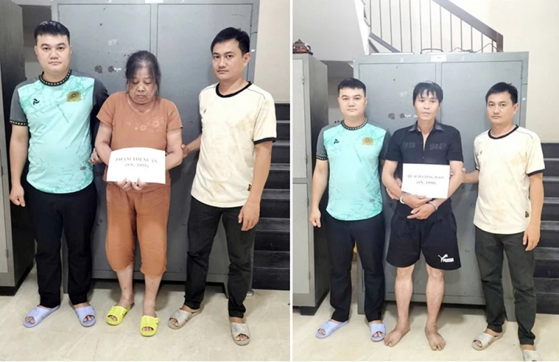 Công an xã Phước Thành, TP Đà Nẵng bắt giữ 2 đối tượng Phạm Thị Xuân và Quách Công Hảo.