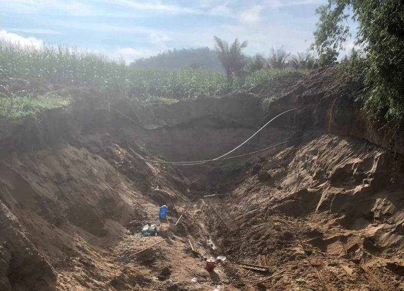Hiện trường 1 trong 3 vụ khai thác khoáng sản trái phép đã bị Công an xã Diên Thọ phát hiện.