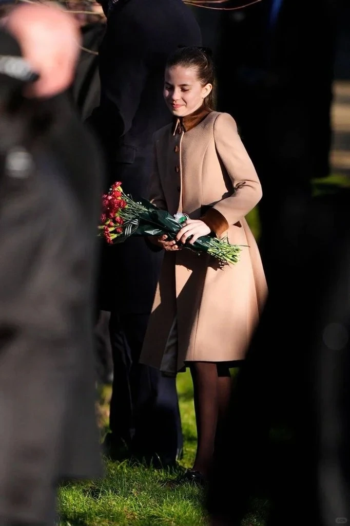 Đứng giữa nắng hanh vàng của buổi sớm mùa đông, tay ôm bó hoa đỏ thắm, nụ cười mỉm chi và ánh mắt điềm tĩnh của Charlotte khiến nhiều người phải trầm trồ. Không còn những biểu cảm tinh nghịch hay vẻ thẹn thùng như vài năm trước, Charlotte của tuổi lên 10 toát lên sự tự tin, phong thái ung dung tự tại. Có vẻ như thời gian đã cực kỳ ưu ái cô bé này, khi mỗi năm trôi qua, các đường nét trên gương mặt lại càng thanh tú, hài hòa hơn, mang theo cả nét sắc sảo của bố William lẫn vẻ mềm mại, hiền hậu của mẹ Kate.