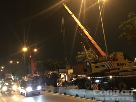 Nhận thông tin, Đội CSGT Bình Triệu có mặt điều tiết giao thông, xử lý hiện trường. Hai xe cẩu được điều đến để khắc phục sự cố.