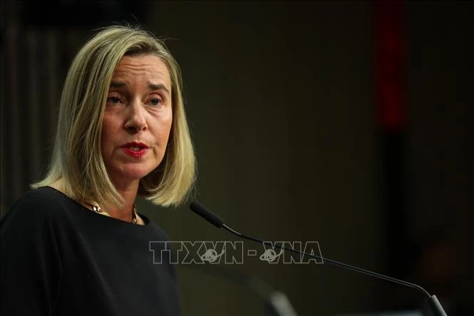 Đại diện cấp cao về chính sách an ninh và đối ngoại của EU , Federica Mogherini tại một cuộc họp báo ở Brussels, Bỉ. (Nguồn: AFP/TTXVN)