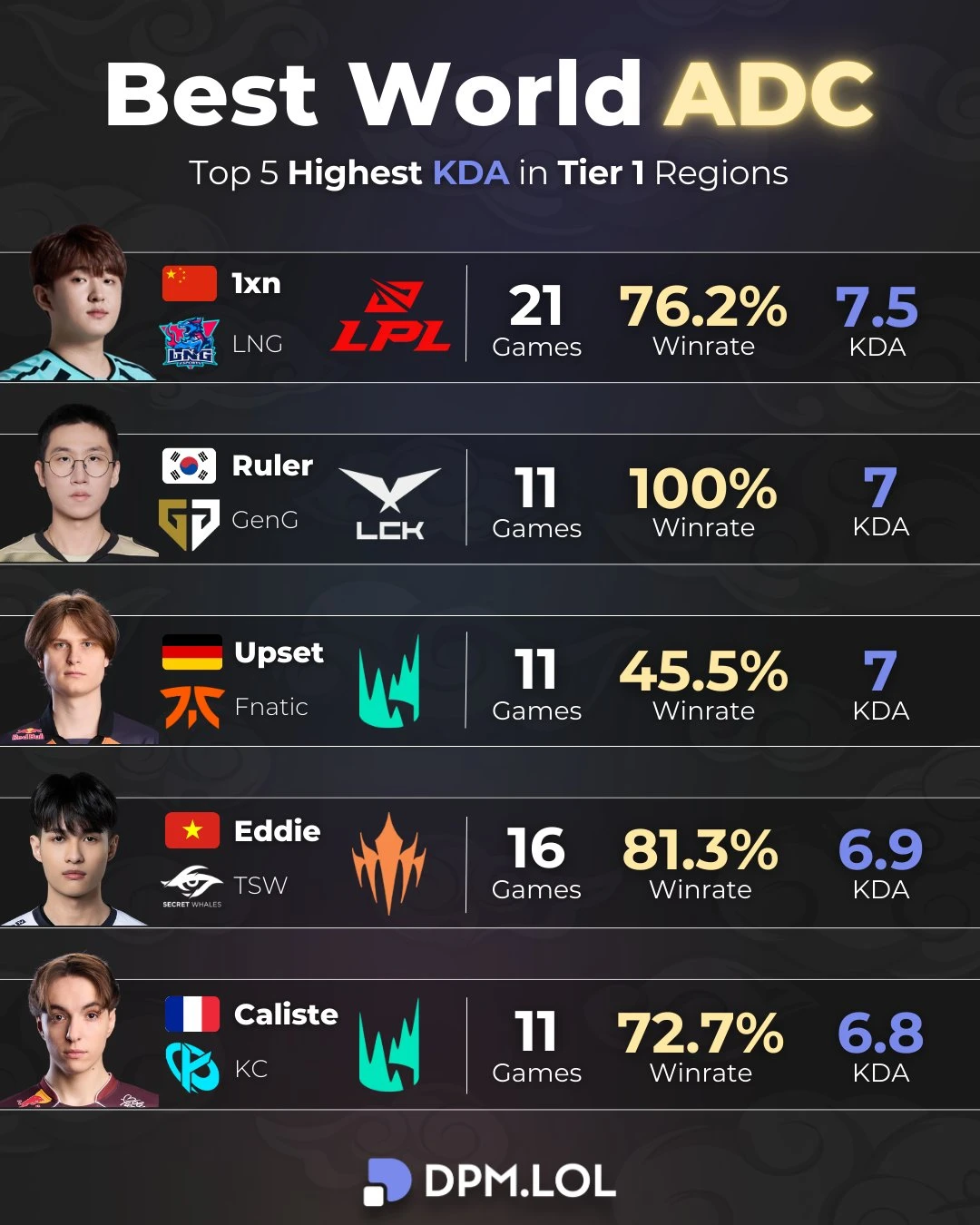 Bảng xếp hạng các AD theo KDA của chuyên trang thống kê DPM.