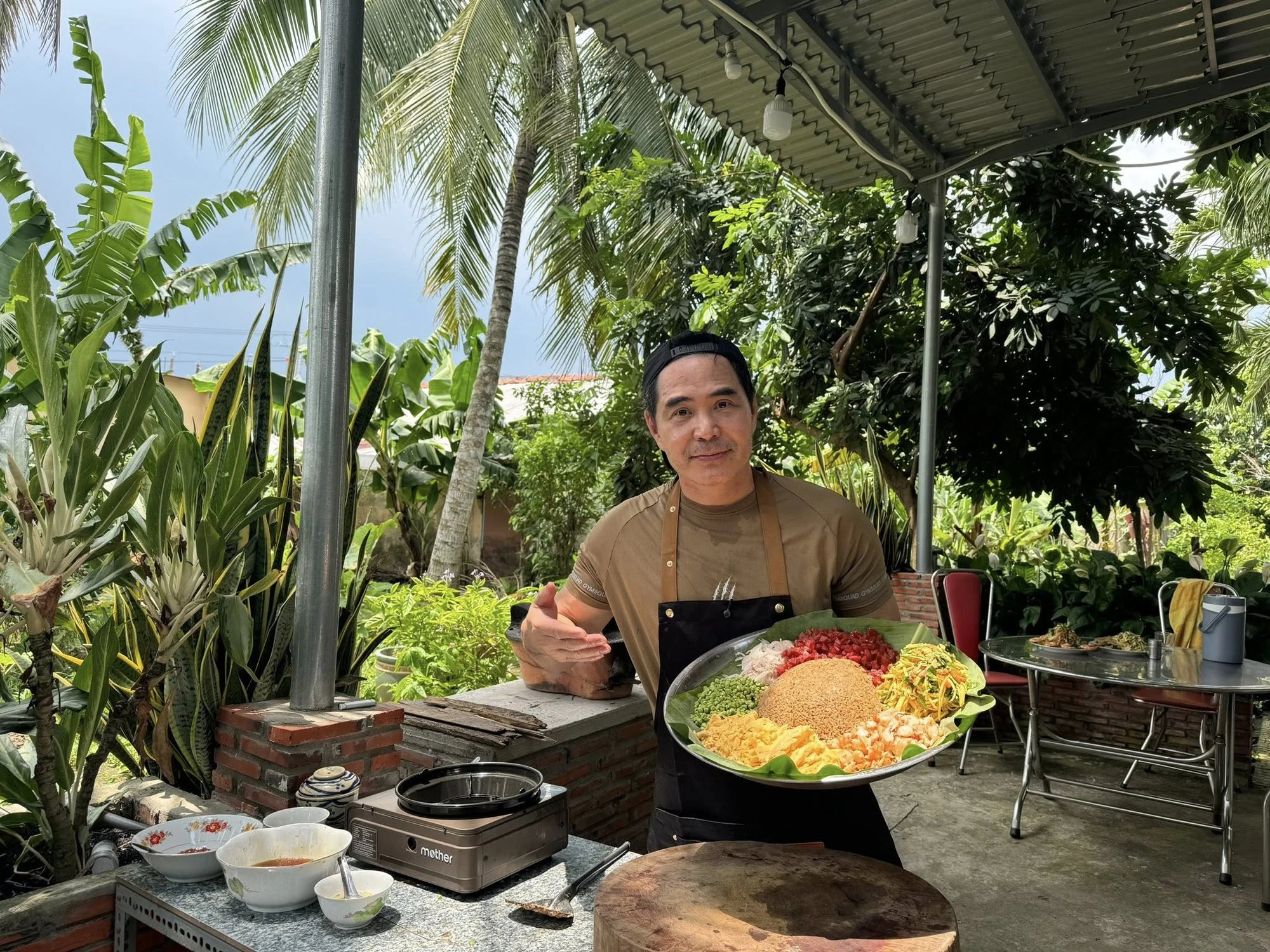 Cuối tuần Trung Dũng thường về Vĩnh Long để chăm sóc vườn tược và tự tay vào bếp nấu ăn cho mẹ