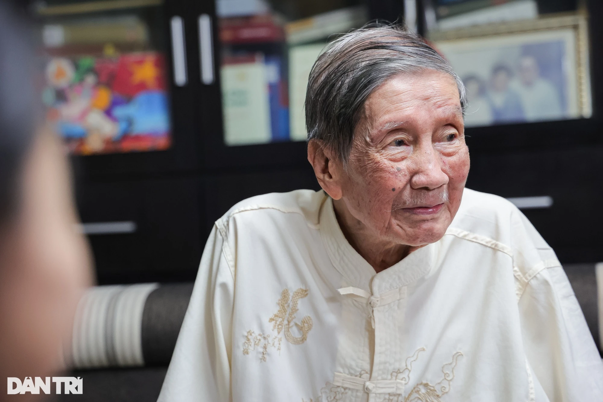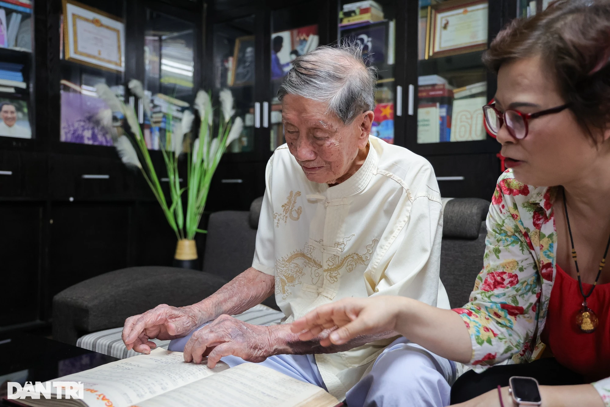 Dù tuổi cao sức cũng đã yếu, không thể trò chuyện, nhạc sĩ Phạm Tuyên vẫn còn minh mẫn, chăm chú lắng nghe.