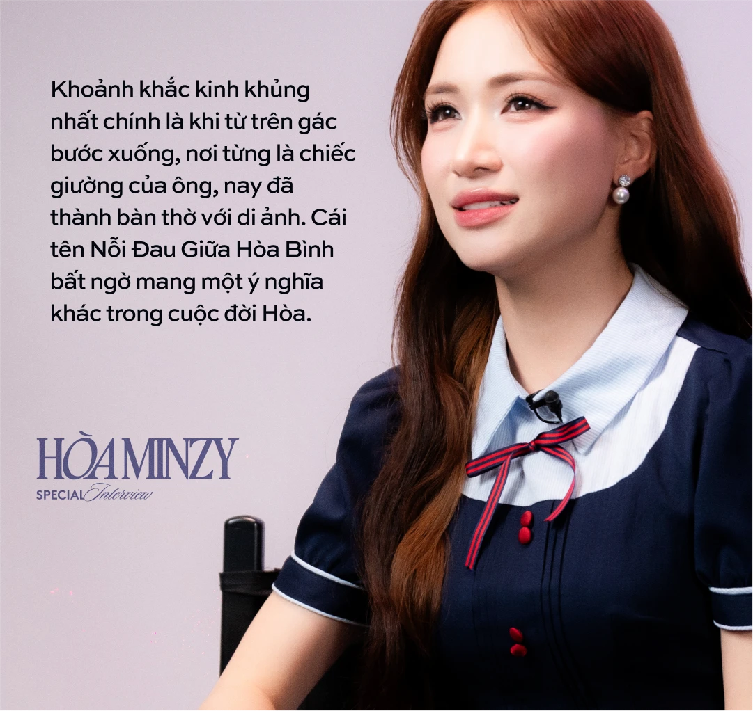Ngay trước thềm ra mắt sản phẩm mới, Hòa Minzy phải trải qua biến cố ông nội qua đời - người mà Hòa luôn dành nhiều tình cảm đặc biệt và cũng là người mà Hoà muốn cho xem sản phẩm lần này nhất vì ông cũng là một cựu chiến binh. Hoà chắc hẳn đã rất đau lòng khi đối mặt với khoảnh khắc sinh ly tử biệt đó đúng không?