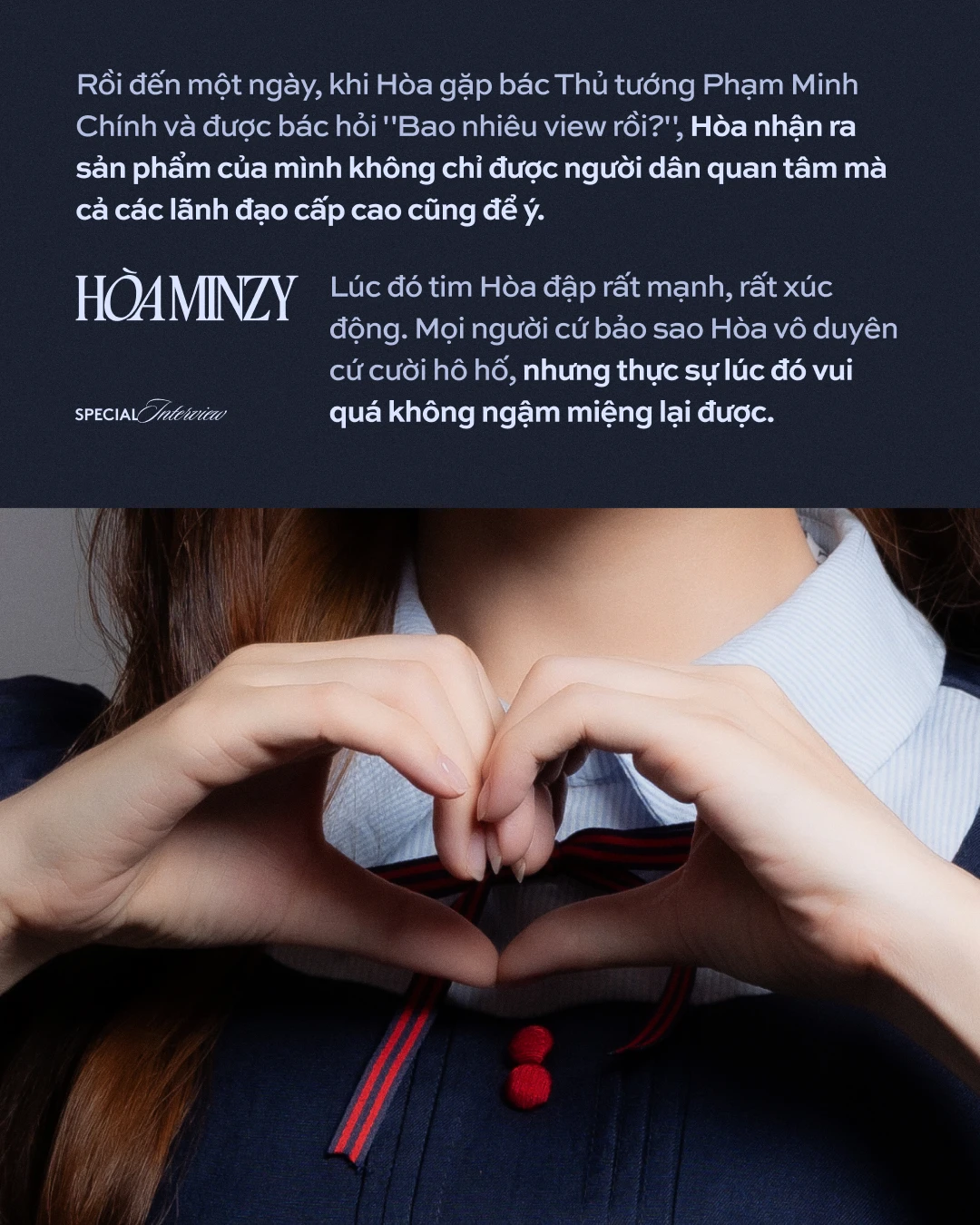 Cuộc trò chuyện dưới đây không phải để khoe thành tích, mà để nhìn thấy phía sau tiếng cười hồn nhiên là một hệ giá trị rất chặt chẽ, làm sản phẩm chỉn chu đến cùng, từ chối so sánh, đặt khán giả vào trung tâm và giữ trái tim đủ ấm để chia sẻ với cộng đồng. Một Hòa Minzy rõ ràng hơn, kiên định hơn và đang đi tiếp, không phải để vượt ai, mà để vượt chính mình.