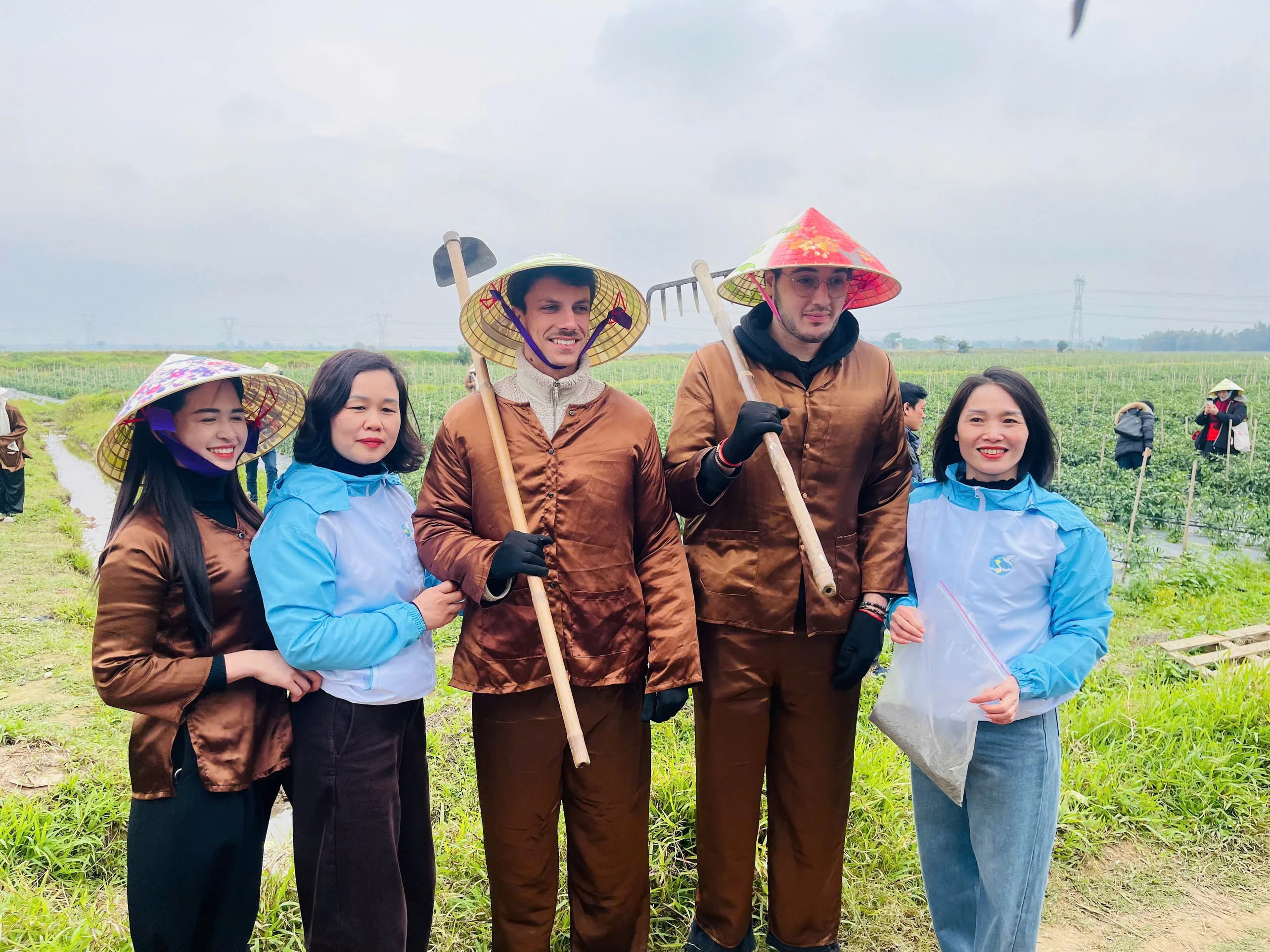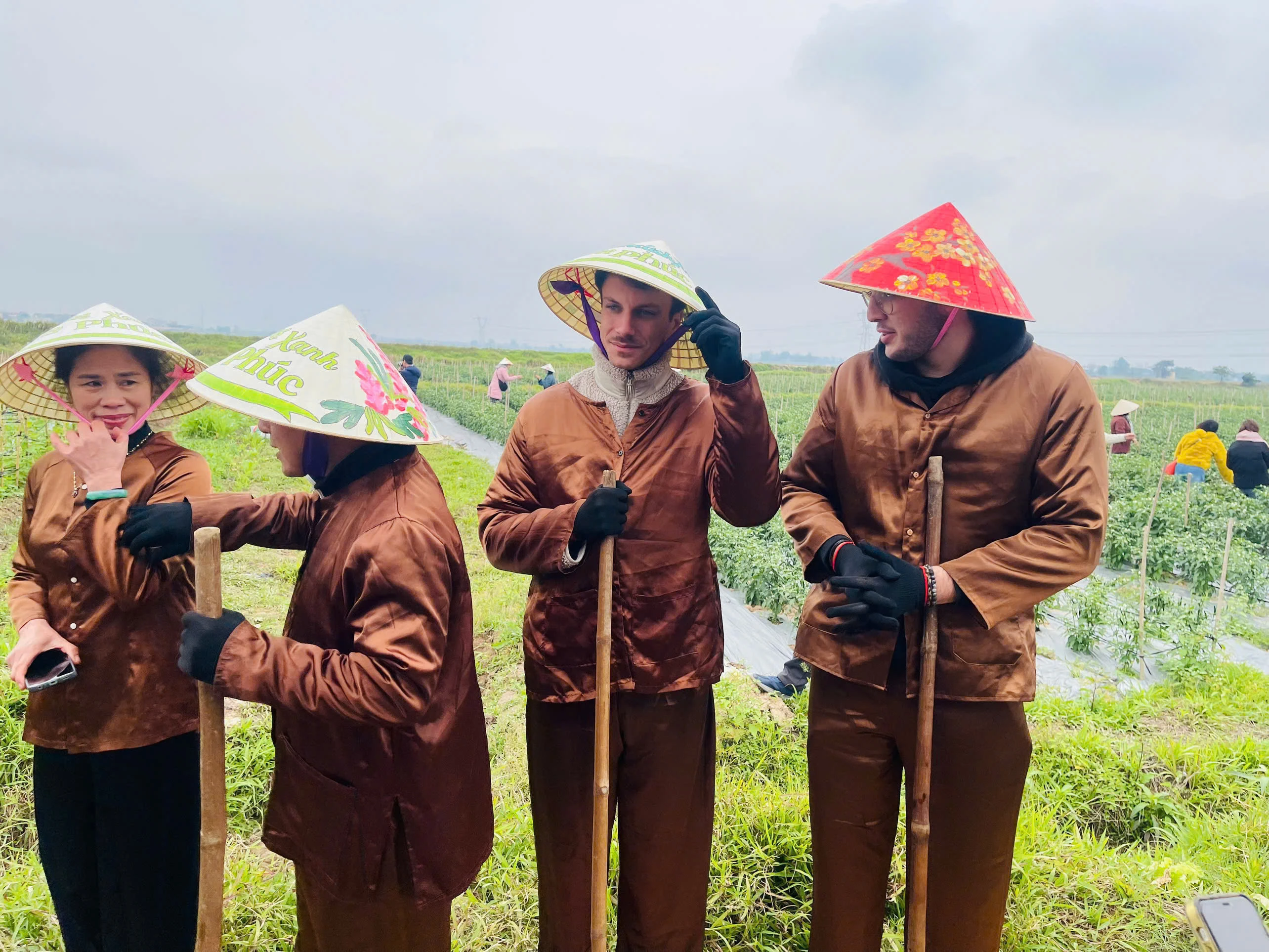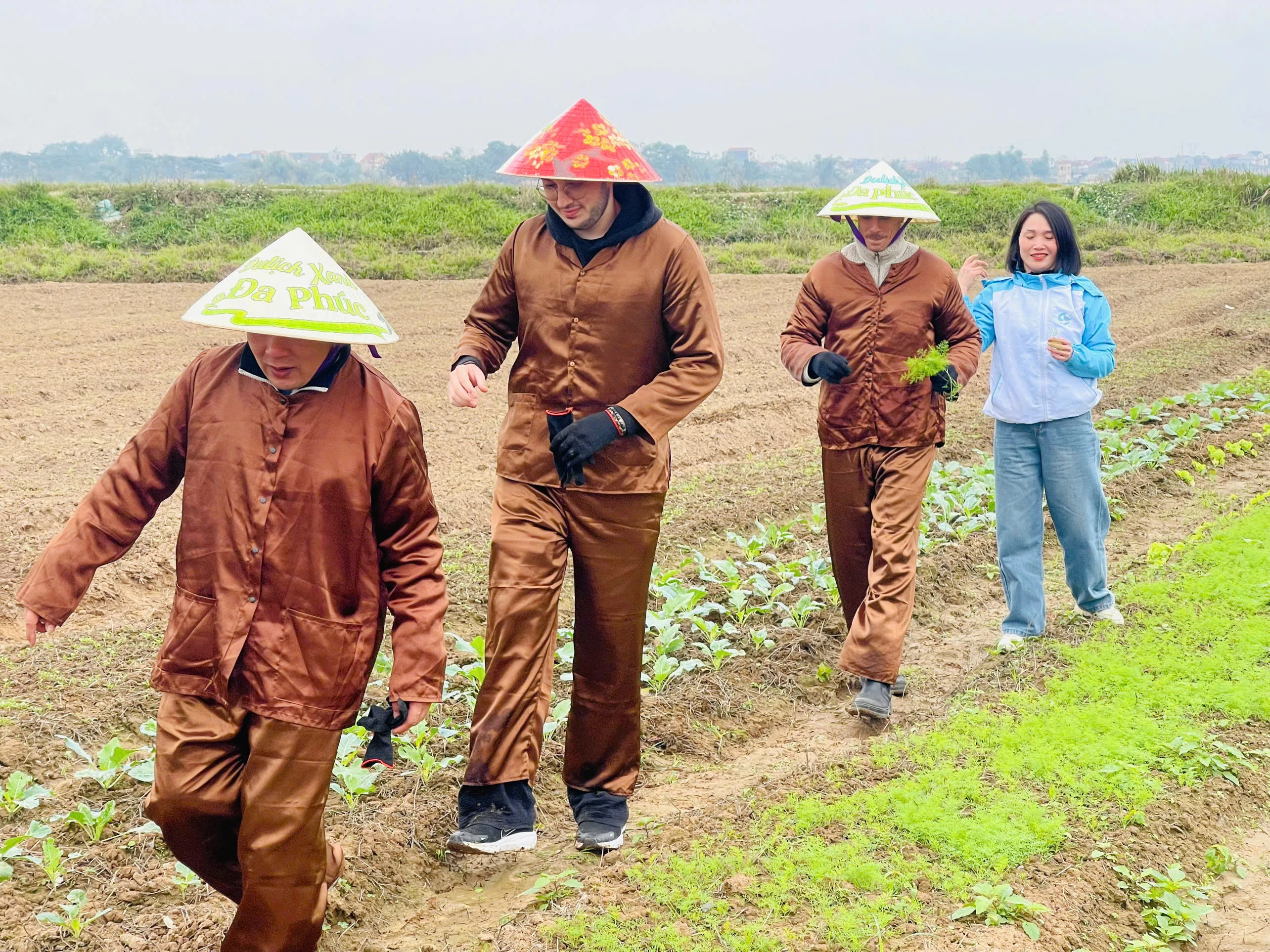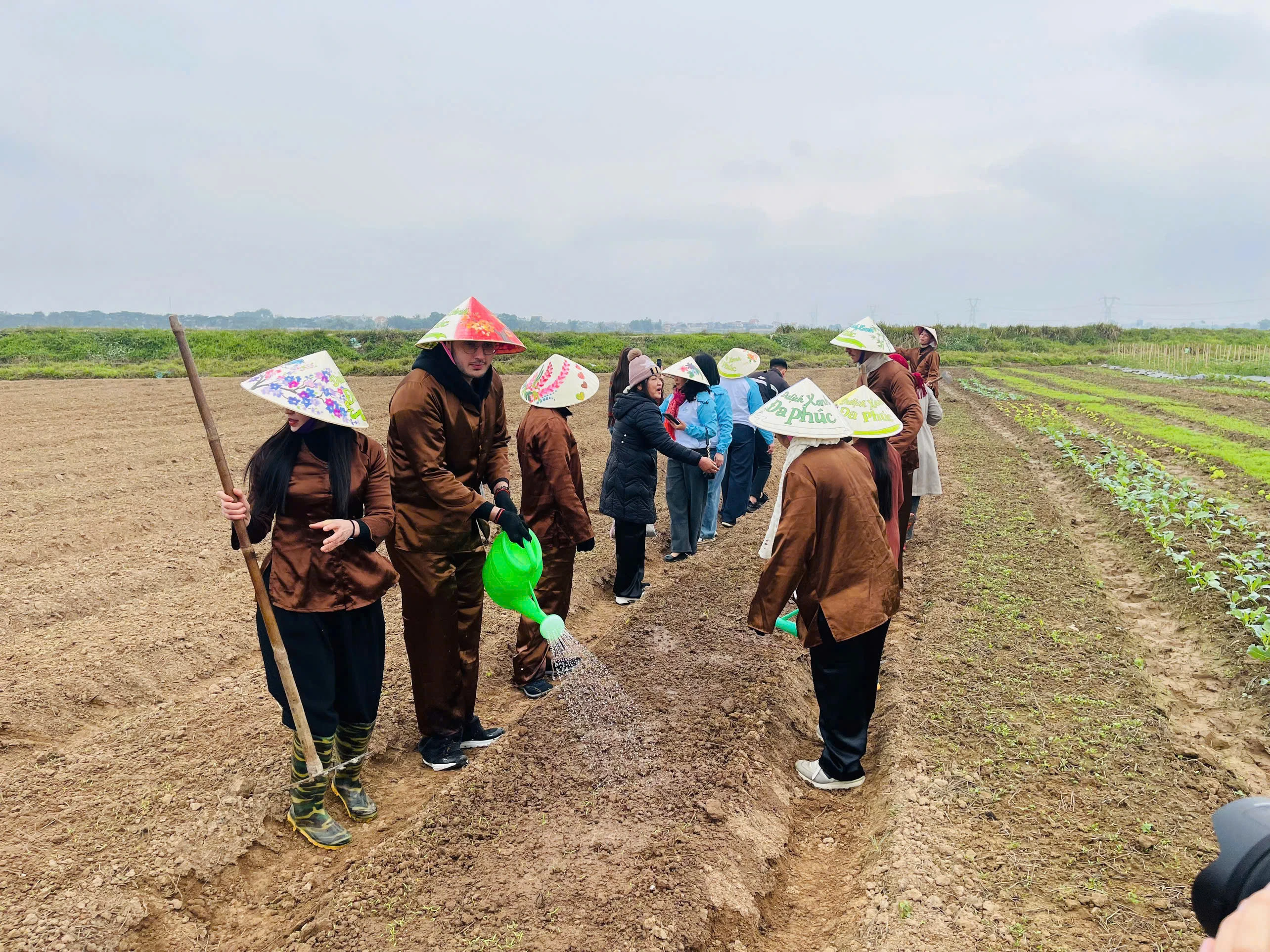 Du khách tham gia các hoạt động trải nghiệm nông nghiệp, như gieo trồng, chăm sóc cây trồng, qua đó nâng cao nhận thức về nông nghiệp xanh và phát triển bền vững.