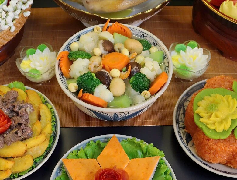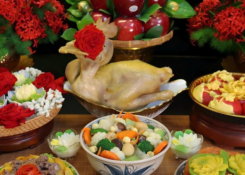 Tuy nhiên, dù có sáng tạo đến đâu, cái hồn cốt của mâm cúng Việt vẫn được giữ gìn trọn vẹn. Bên cạnh những món mới lạ mắt, ta vẫn thấy sự hiện diện không thể thay thế của gà luộc vàng ươm ngậm hoa hồng đỏ thắm, đĩa nem rán giòn tan, bát canh măng mọc nóng hổi hay đĩa xào thập cẩm bóng bẩy. Sự kết hợp giữa cái cũ và cái mới, giữa vị ngon truyền thống và vẻ đẹp hiện đại đã tạo nên những mâm cỗ cúng ông Táo vừa trang nghiêm, thành kính, lại vừa gần gũi, ấm áp hơi thở cuộc sống đương đại.
