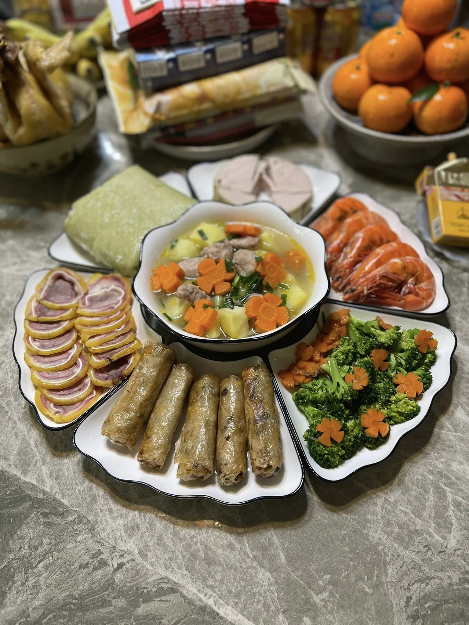 Lướt một vòng Newsfeed, cảm giác như đang lạc vào một triển lãm ẩm thực thu nhỏ. Người thì khoe mâm cỗ mặn đầy đủ “bát chiết yêu”, người lại chọn lễ chay thanh tịnh. Nhưng điểm chung là ai nấy đều hân hoan, tỉ mẩn từng chút một. Những bức ảnh chụp vội bằng điện thoại hay được setup cầu kỳ đều toát lên niềm vui bình dị: Tết đã về thật rồi!