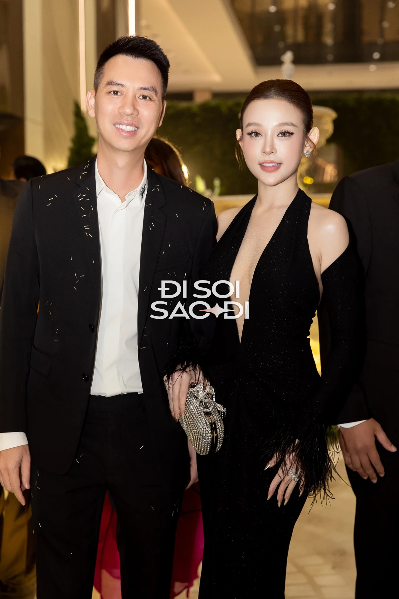 Hà Tăng xuất hiện từ sớm, diện thiết kế thanh lịch, thần thái đúng chuẩn biểu tượng sắc đẹp của Vbiz. Sánh đôi bên Louis Nguyễn, cả hai ghi điểm với hình ảnh tinh tế, sang trọng và lúc nào cũng kè kè nhau. Song song đó, Linh Rin cũng được Phillip Nguyễn hộ tống đến đám cưới. Nhan sắc của mẹ bỉm 1 con khiến dân tình xuýt xoa vì ngày càng sang trọng và mặn mà.