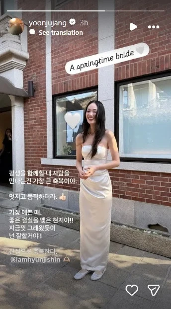 Là siêu mẫu nổi tiếng, Shin Hyun Ji chỉ cần diện váy cưới đơn giản, đi giày bệt cũng đủ nổi bật. Ảnh: Allkpop