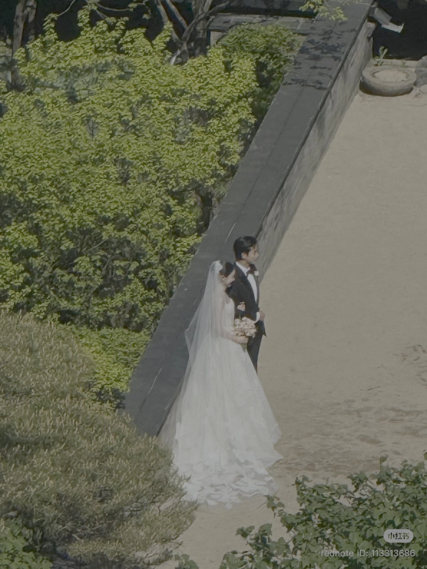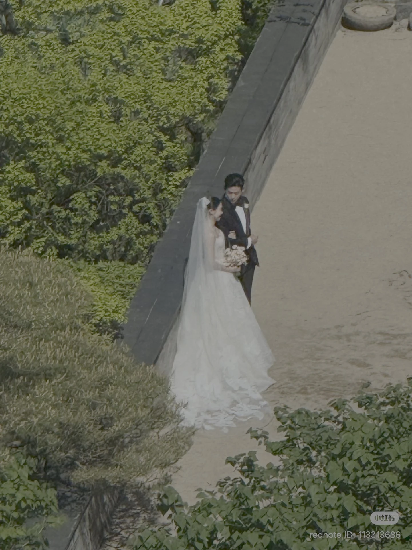 Dù ảnh chất lượng thấp nhưng có thể thấy cô dâu chú rể rất nổi bật, xứng đôi. Ảnh: Rednote