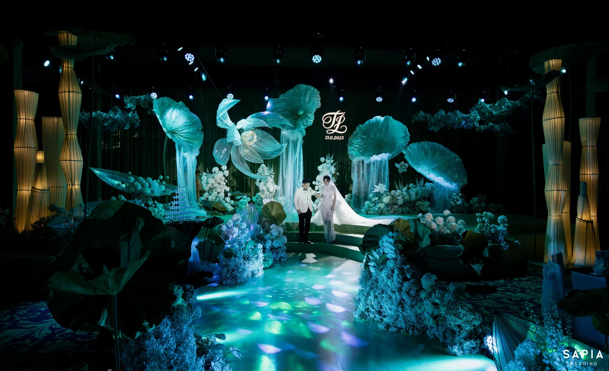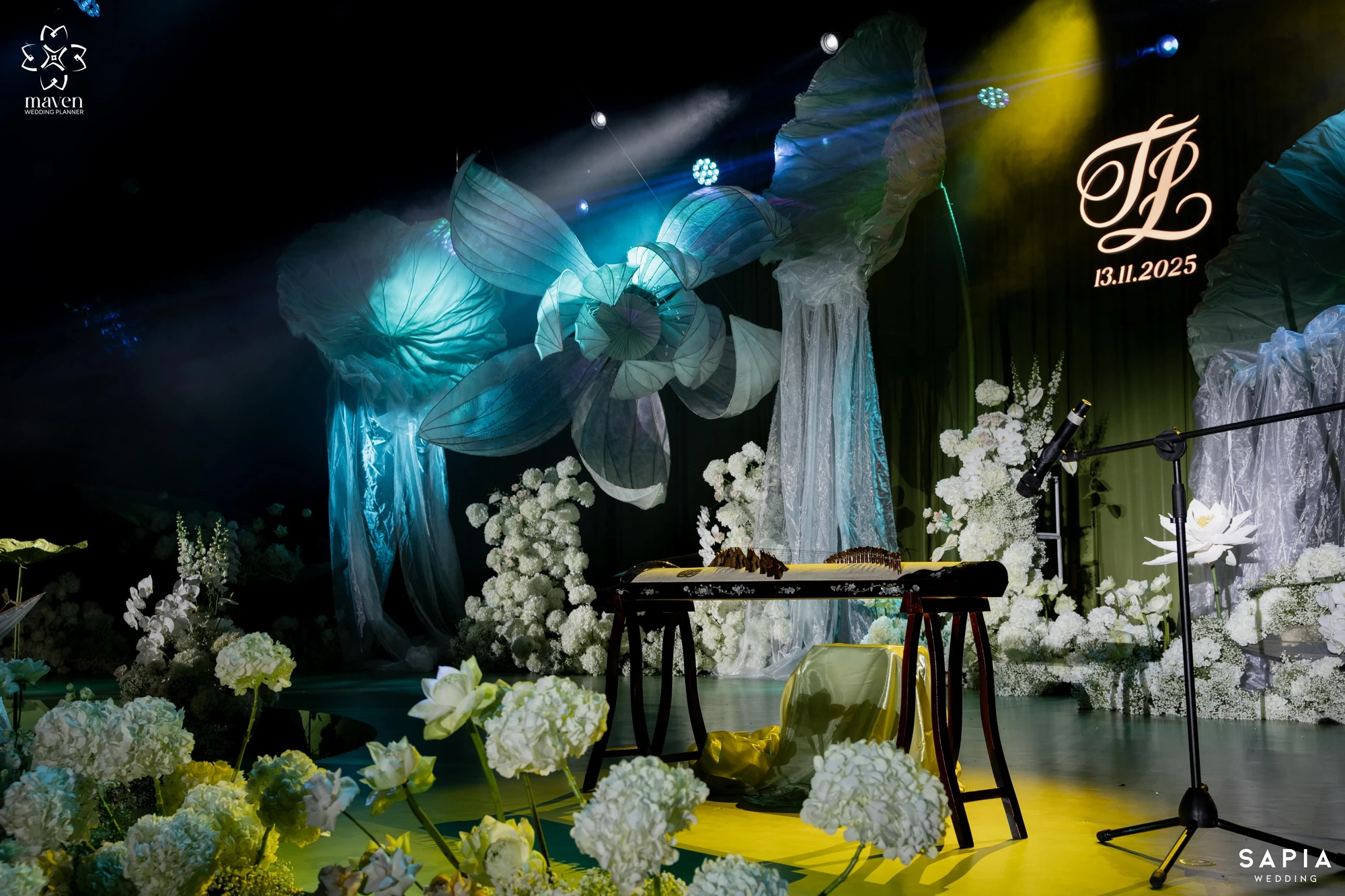 Lễ đường cũng trang trí đầy hoa tươi, ánh sáng rực rỡ